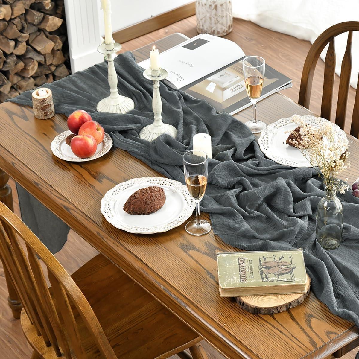 Artoid Mode Boho Cheesecloth Gauze Dusty Pink Wedding Table Runner, 120 Inch Seasonal Fabric Kitchen Dining Holiday Table Decor for Home Party Indoor(Grey)