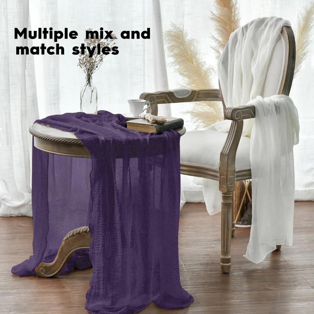 Artoid Mode Boho Cheesecloth Gauze Dusty Pink Wedding Table Runner, 120 Inch Seasonal Fabric Kitchen Dining Holiday Table Decor for Home Party Indoor(Purple)
