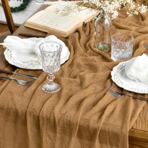 Artoid Mode Boho Cheesecloth Gauze Dusty Pink Wedding Table Runner, 120 Inch Seasonal Fabric Kitchen Dining Holiday Table Decor for Home Party Indoor(Terracotta)