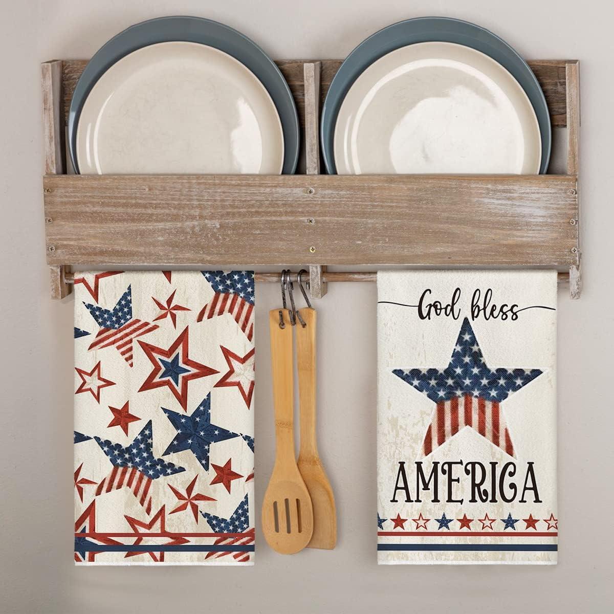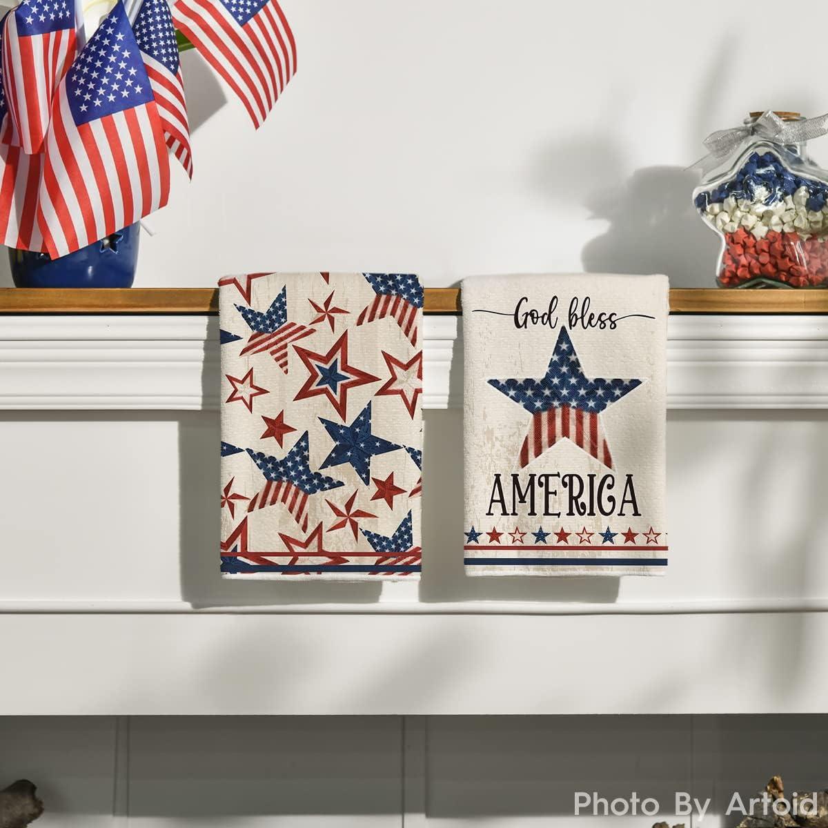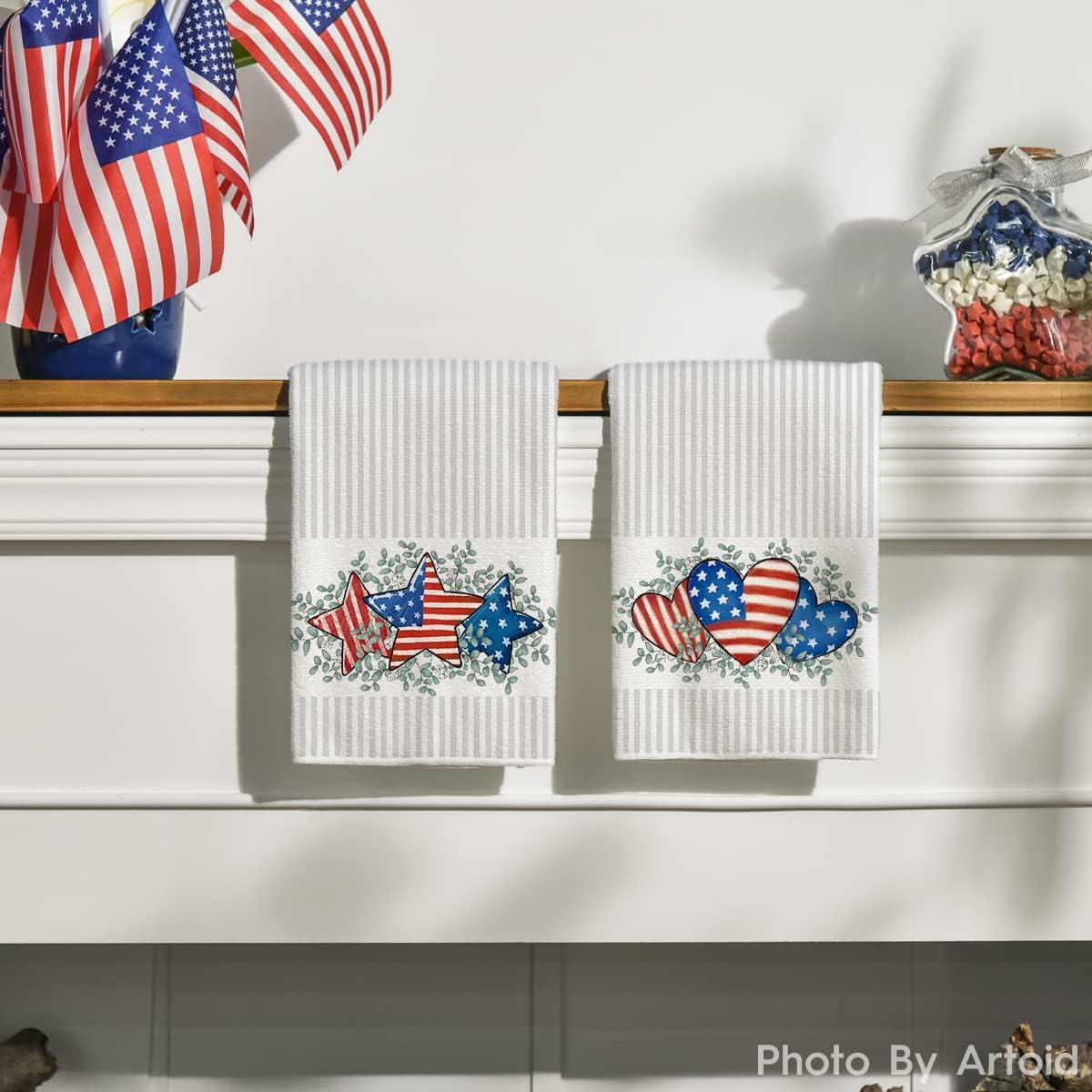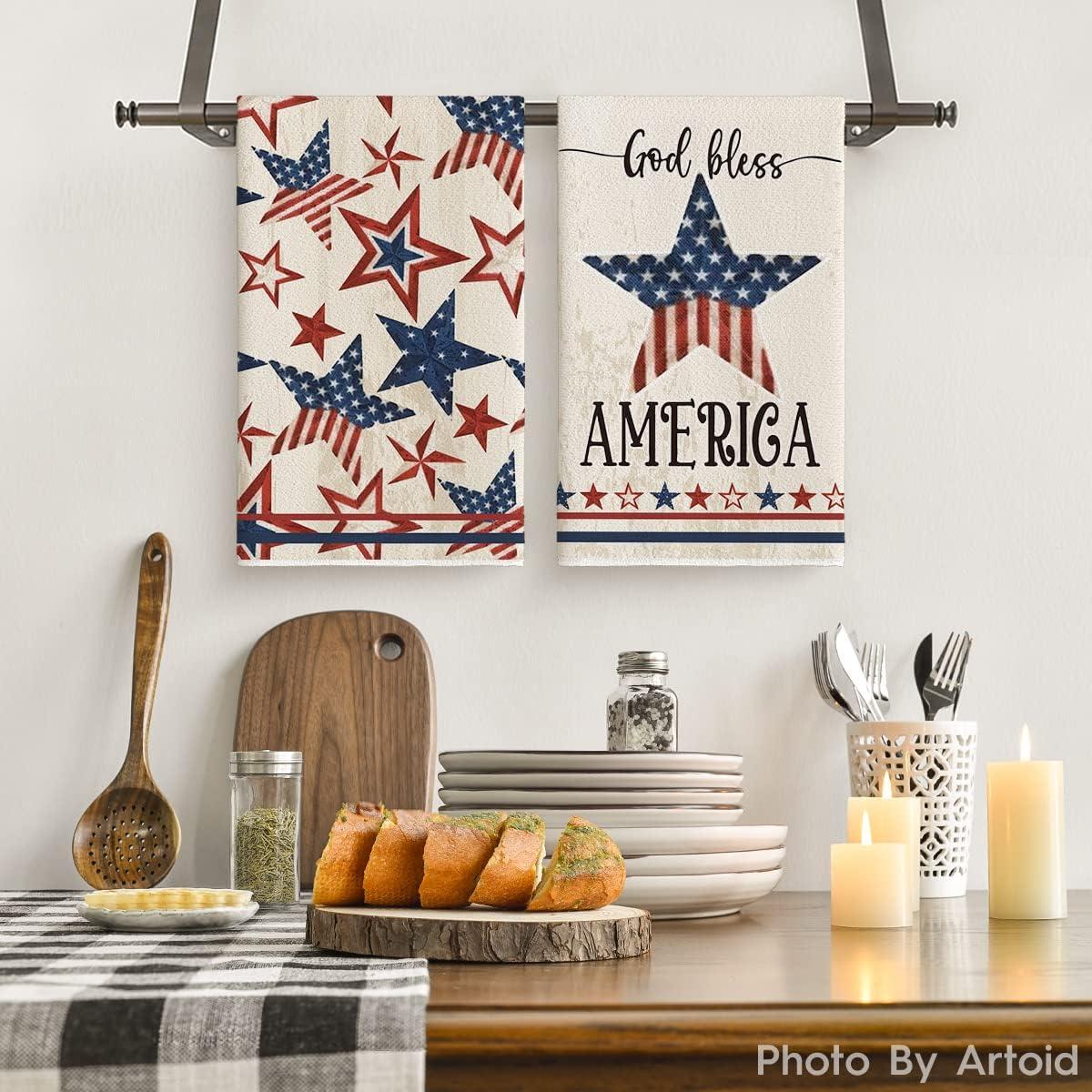 Artoid Mode America Stars Home Patriotic 4th of July Kitchen Towels Dish Towels, 18×26 Inch Memorial Day Decoration Hand Towels Set of 2