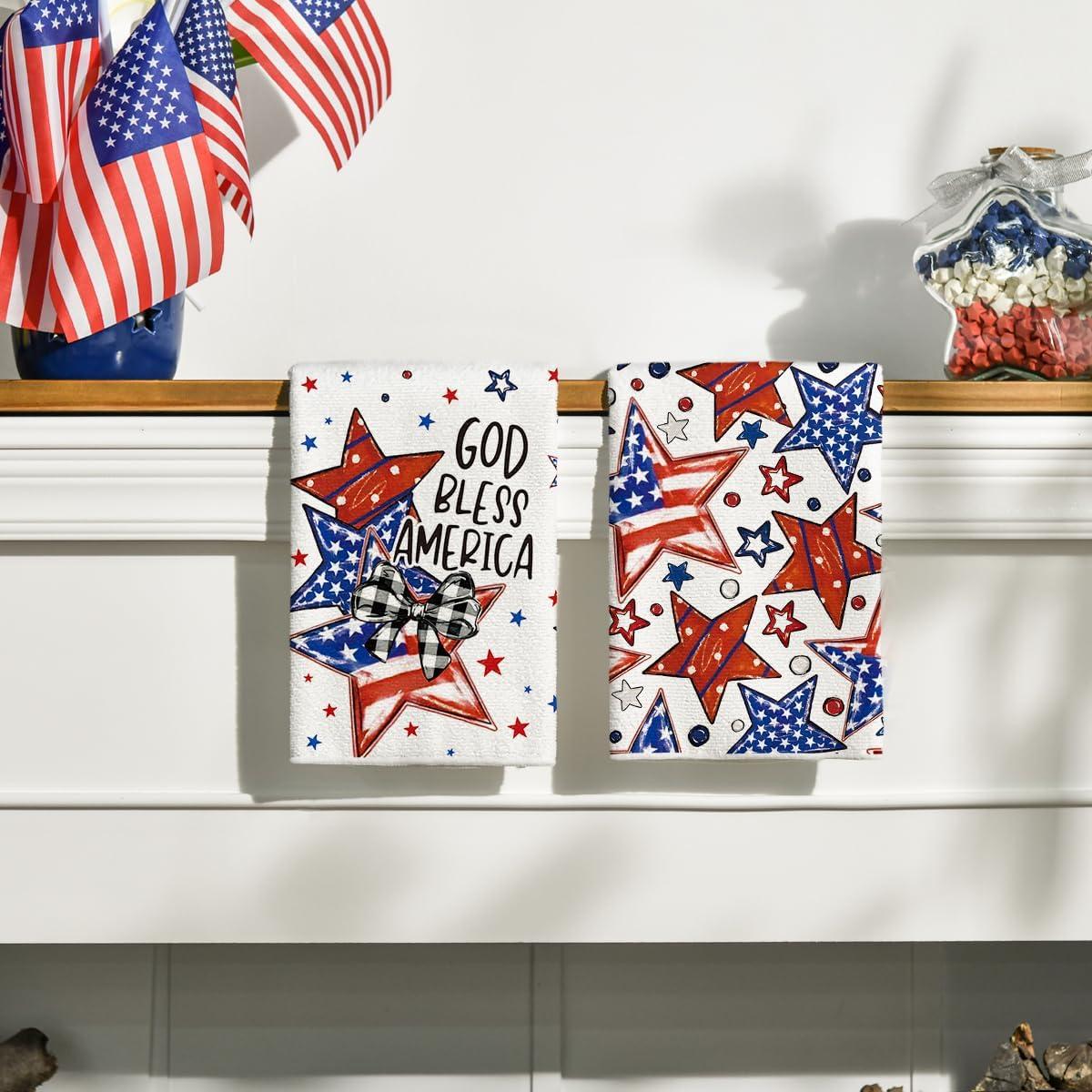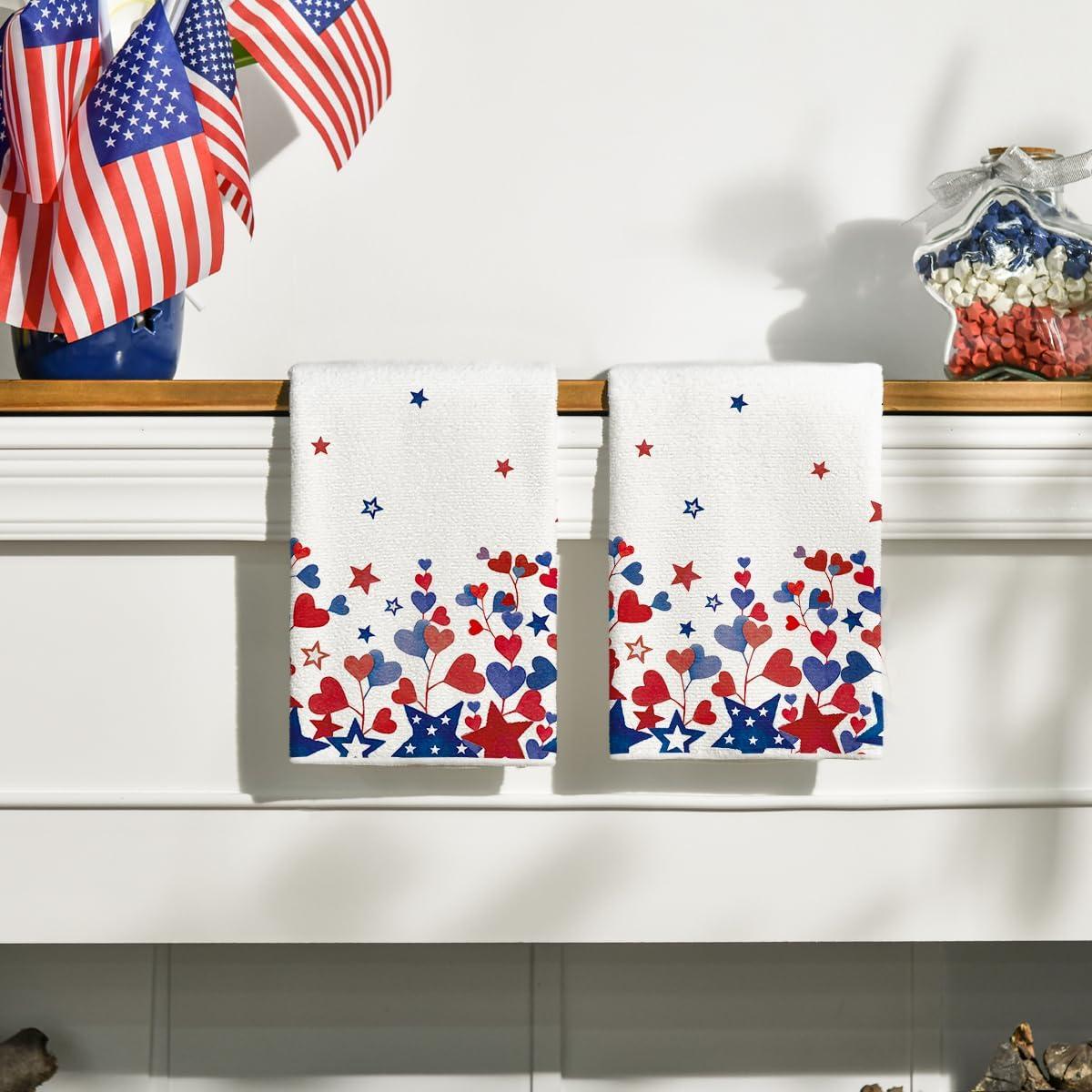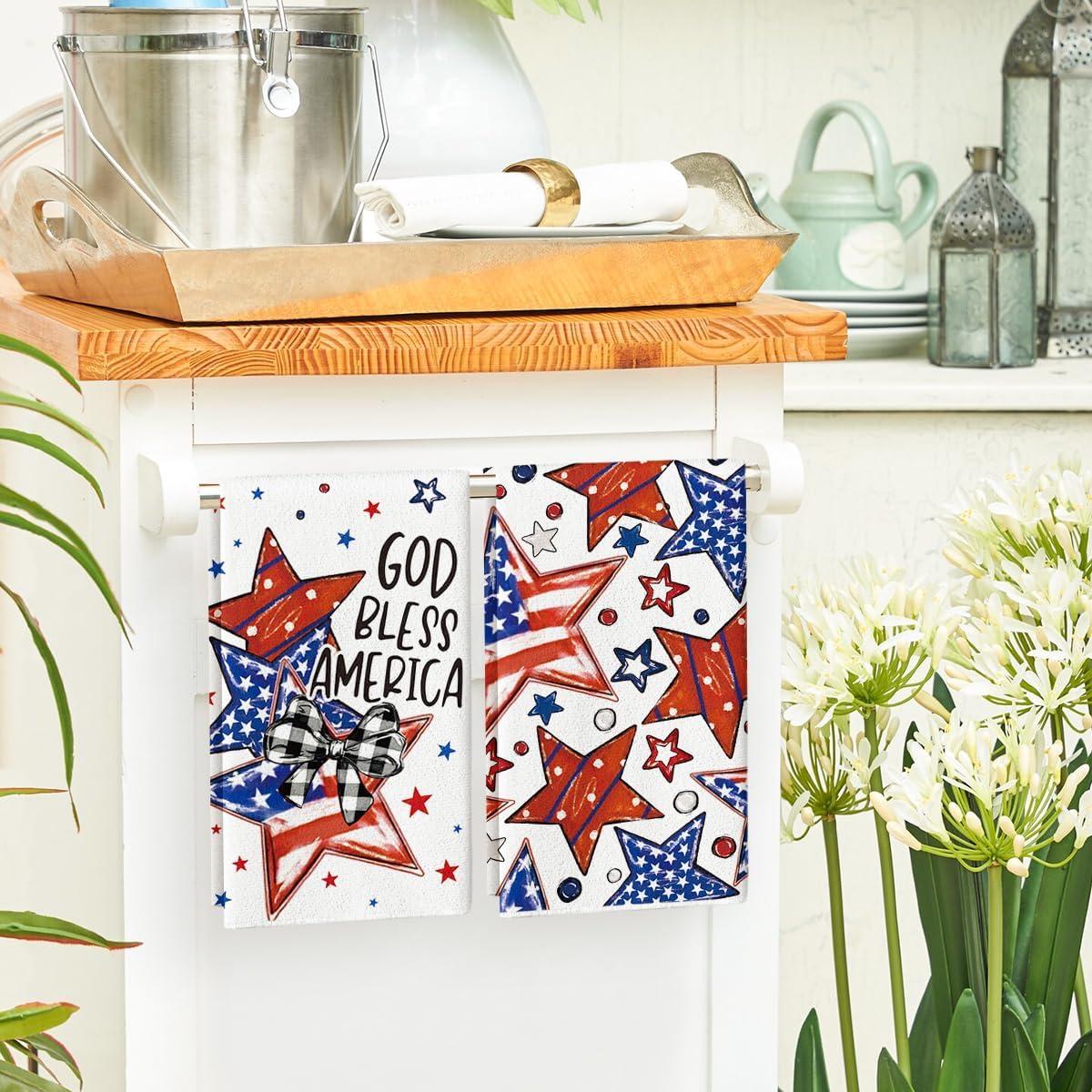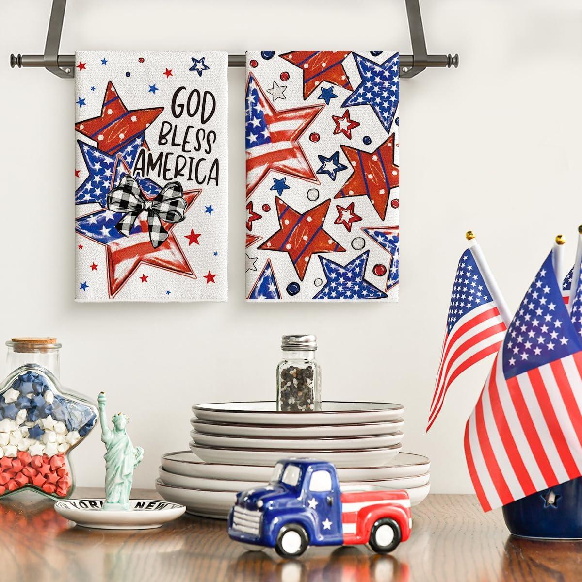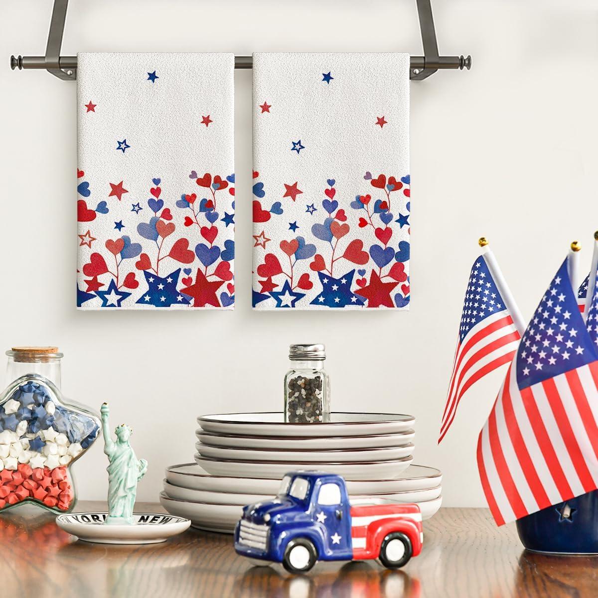 Artoid Mode America Stars Home Patriotic 4th of July Kitchen Towels Dish Towels, 18×26 Inch Memorial Day Decoration Hand Towels Set of 2