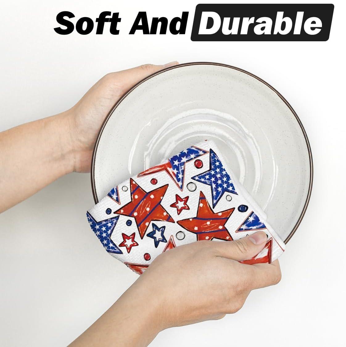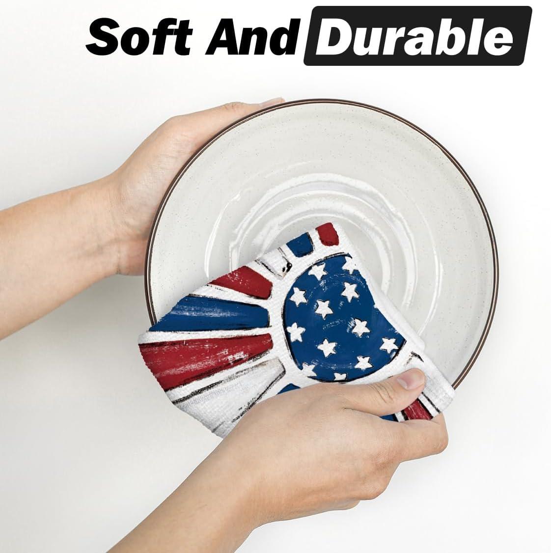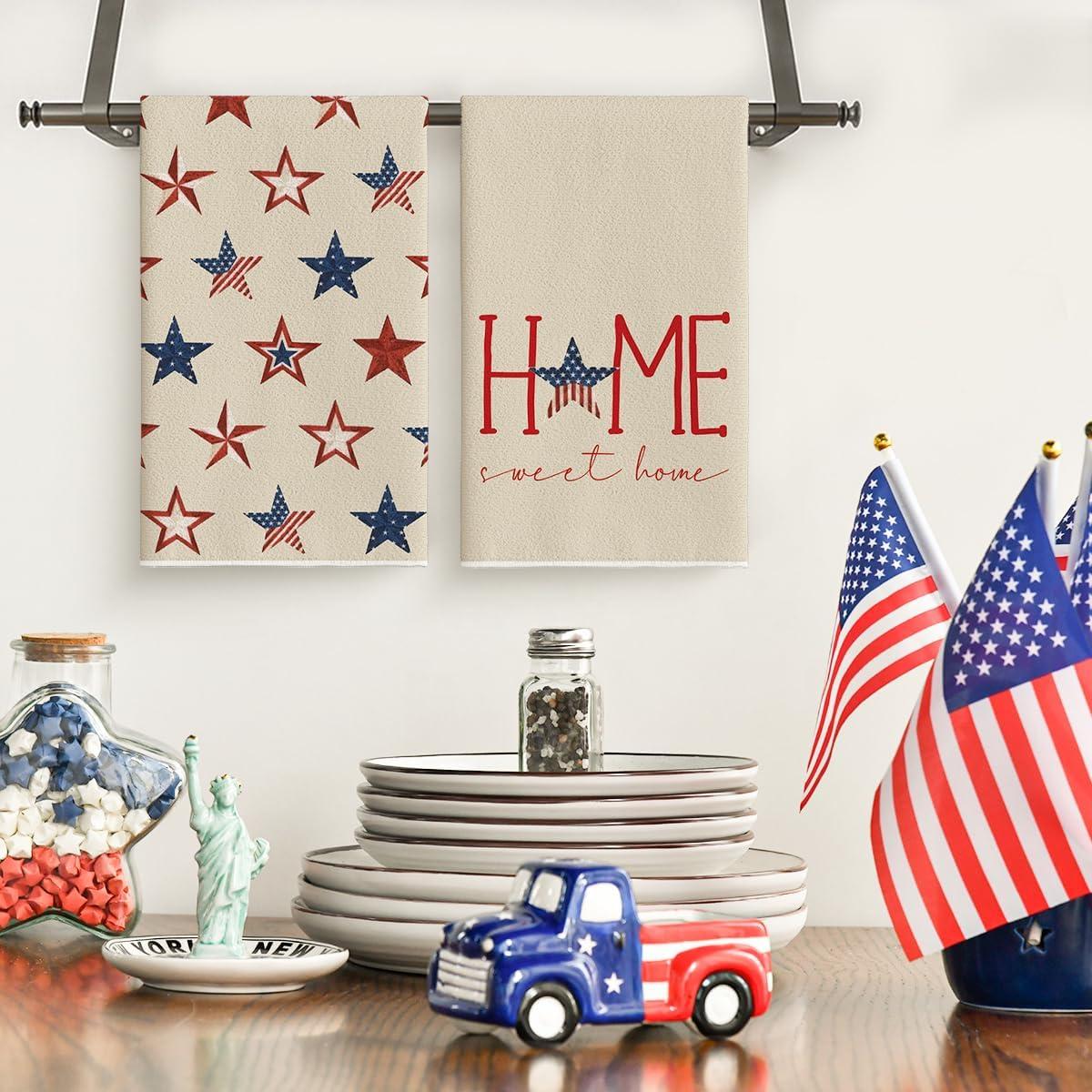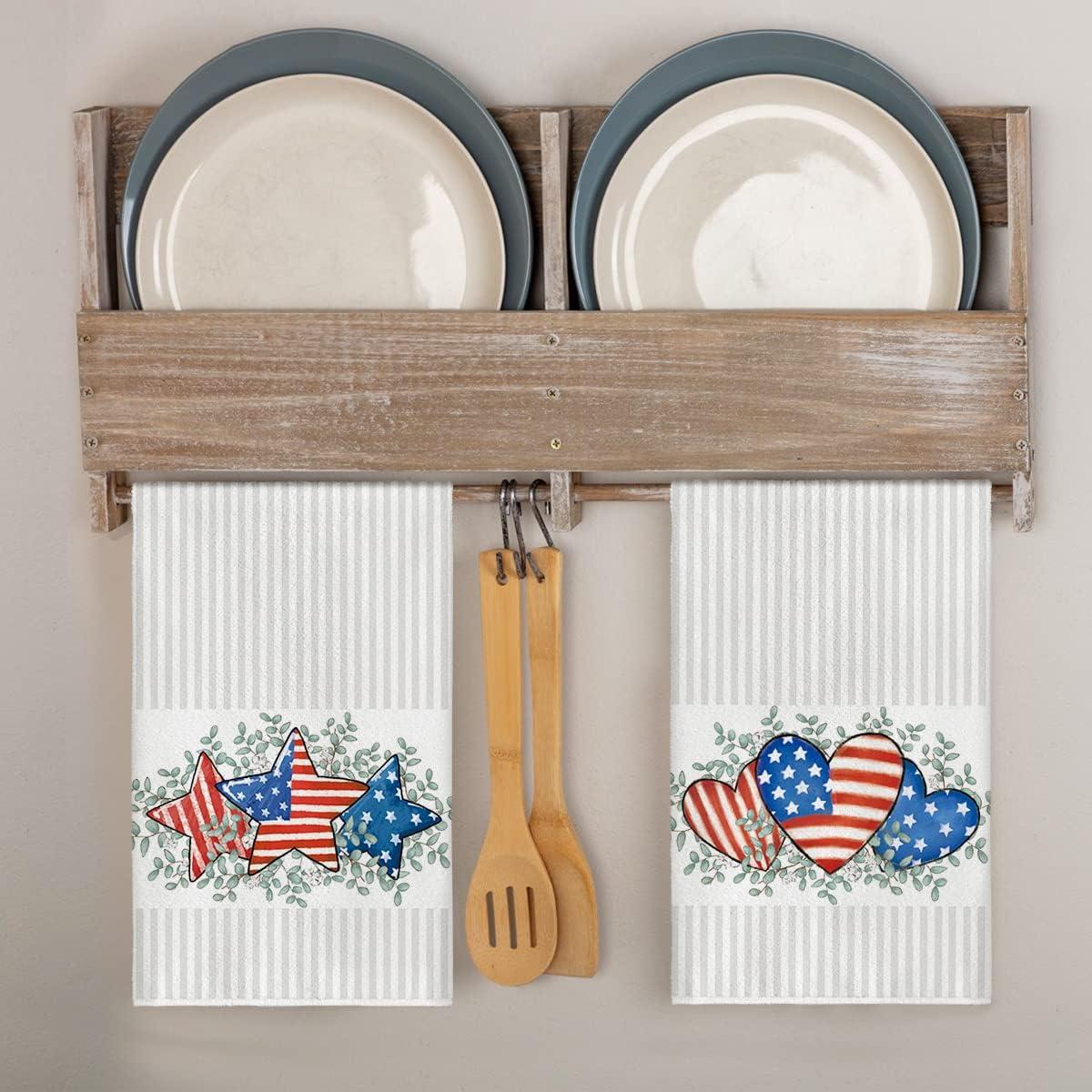 Artoid Mode America Stars Home Patriotic 4th of July Kitchen Towels Dish Towels, 18×26 Inch Memorial Day Decoration Hand Towels Set of 2