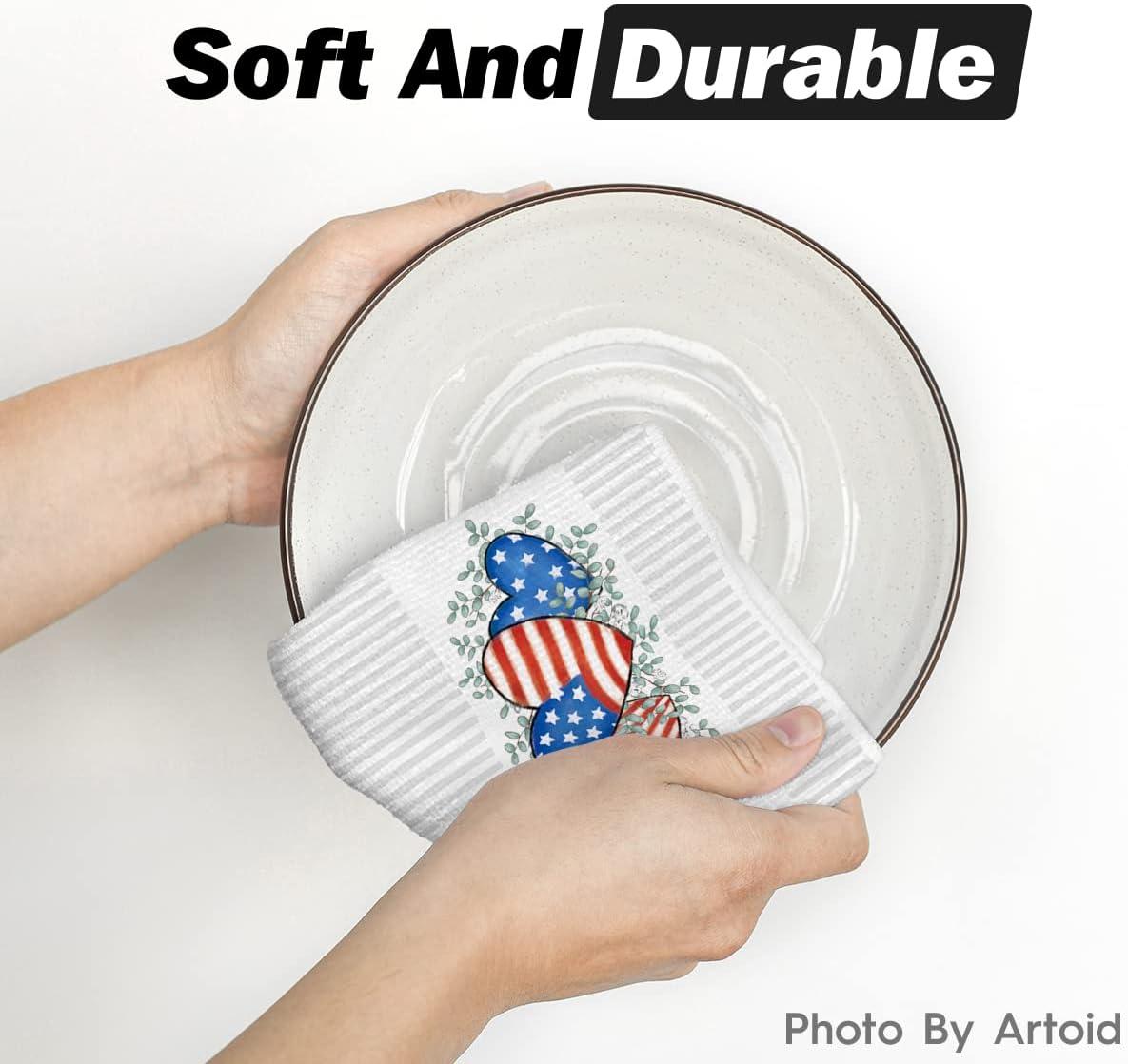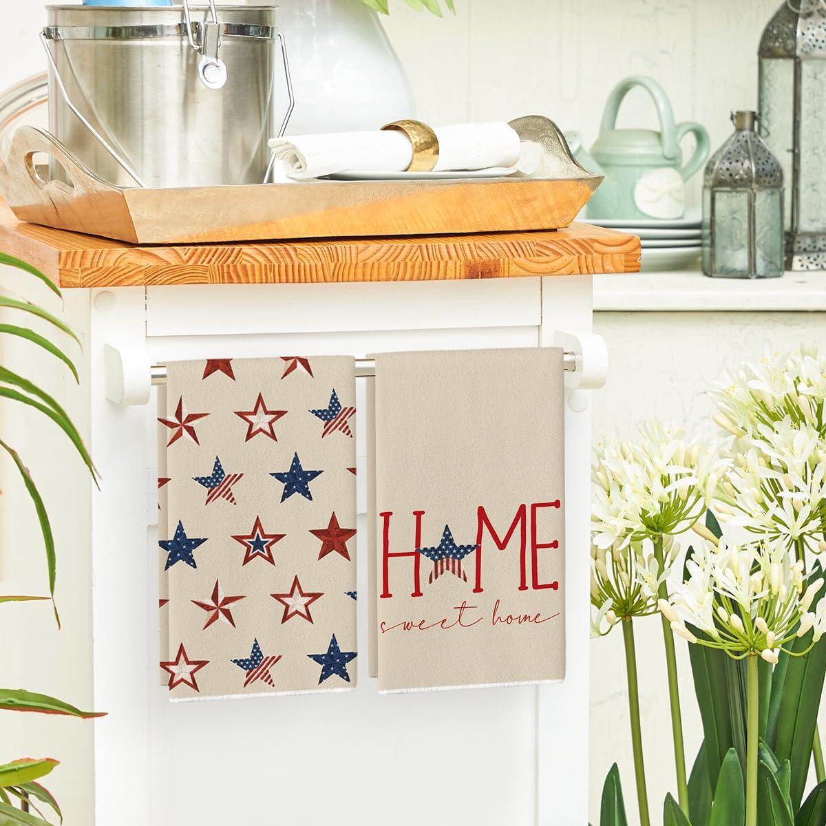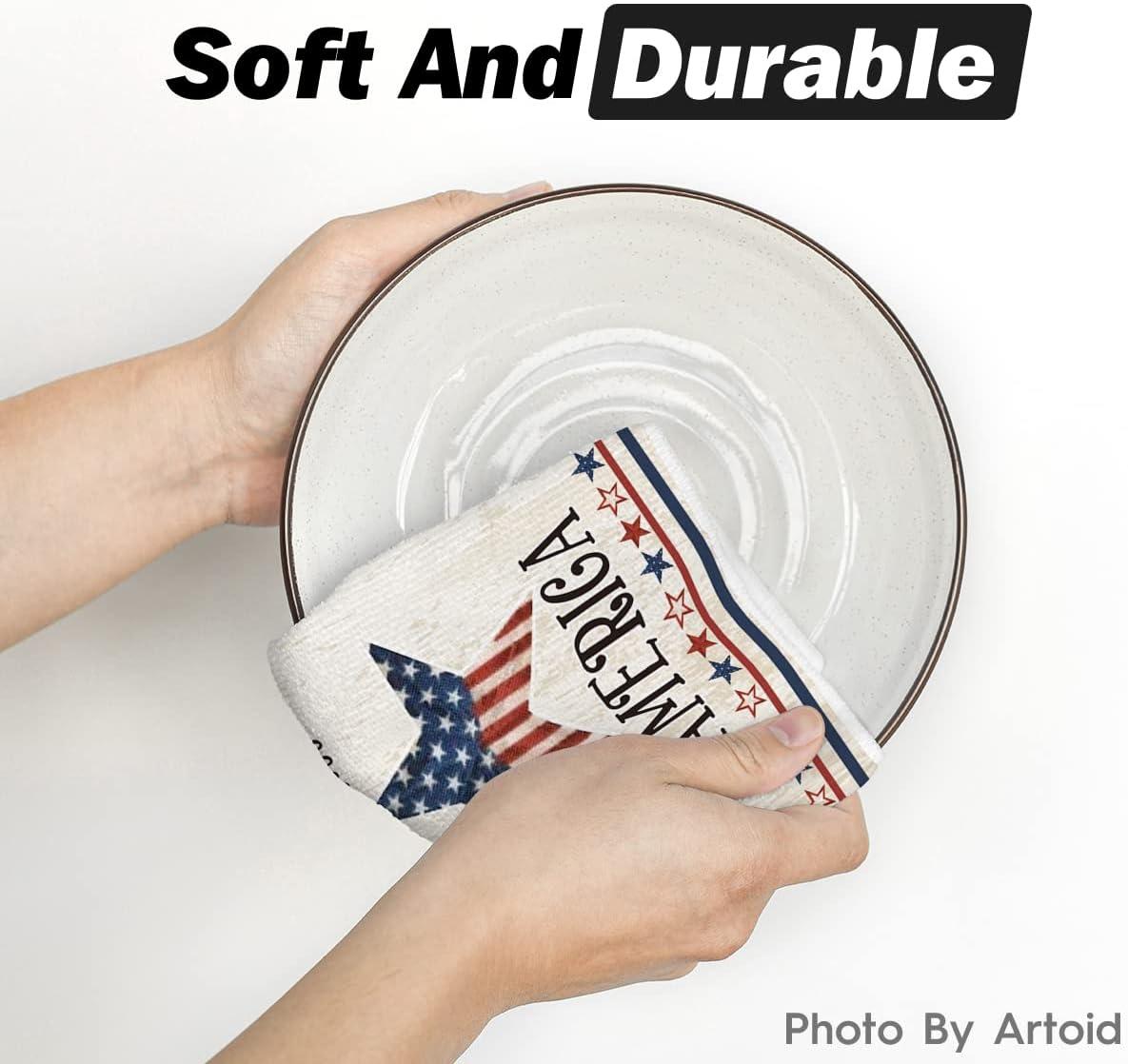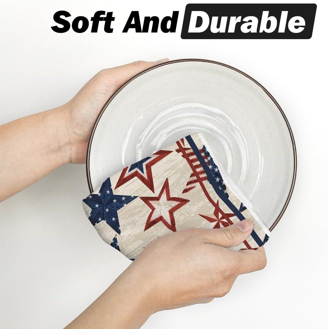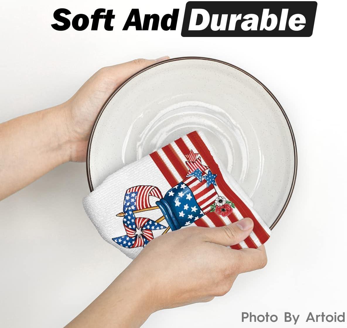 Artoid Mode America Stars Home Patriotic 4th of July Kitchen Towels Dish Towels, 18×26 Inch Memorial Day Decoration Hand Towels Set of 2