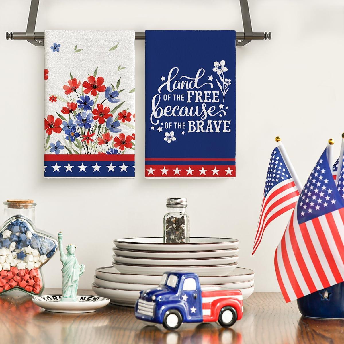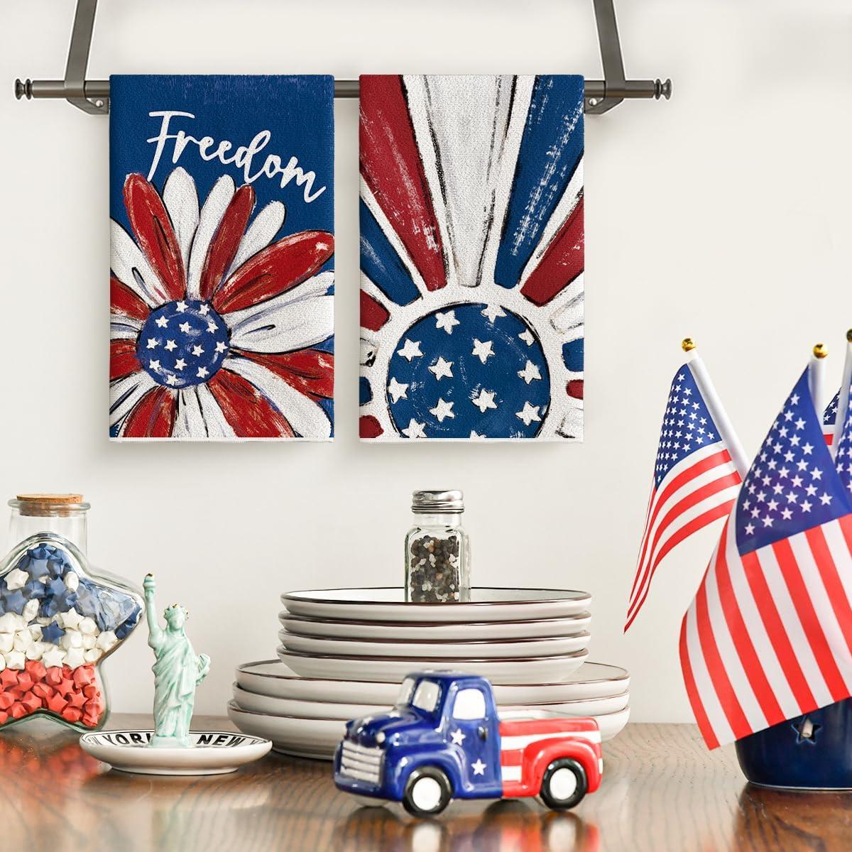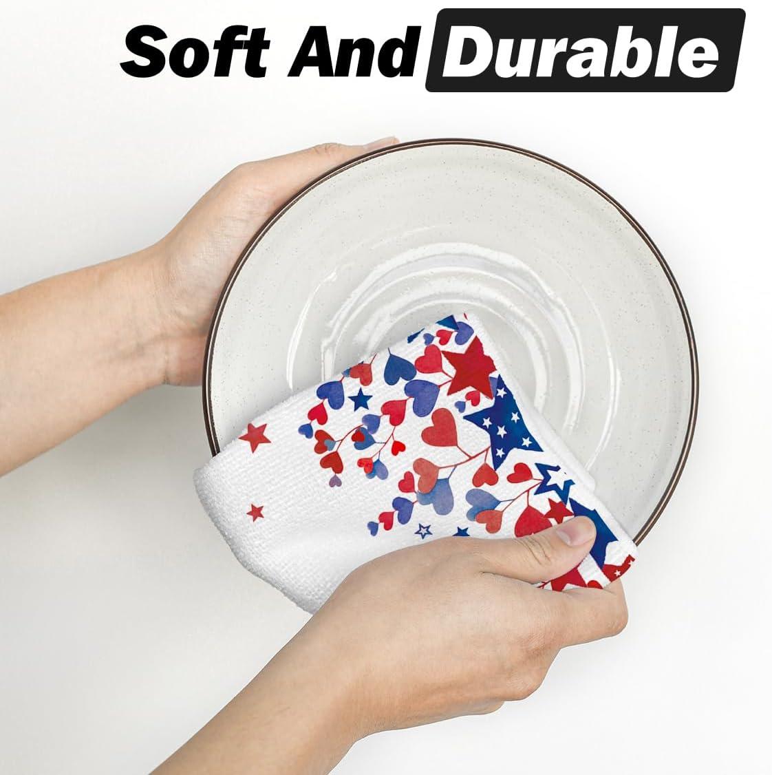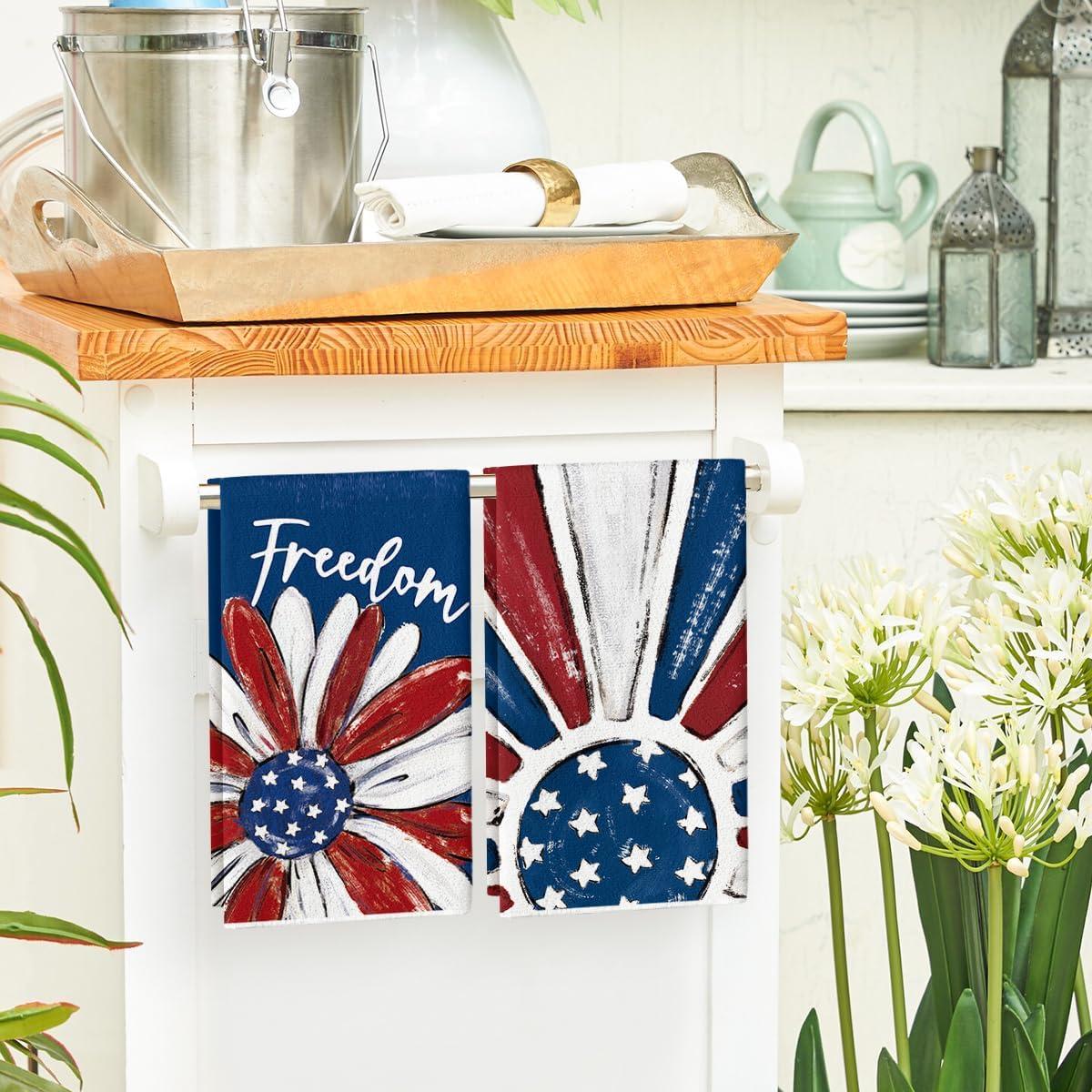 Artoid Mode America Stars Home Patriotic 4th of July Kitchen Towels Dish Towels, 18×26 Inch Memorial Day Decoration Hand Towels Set of 2