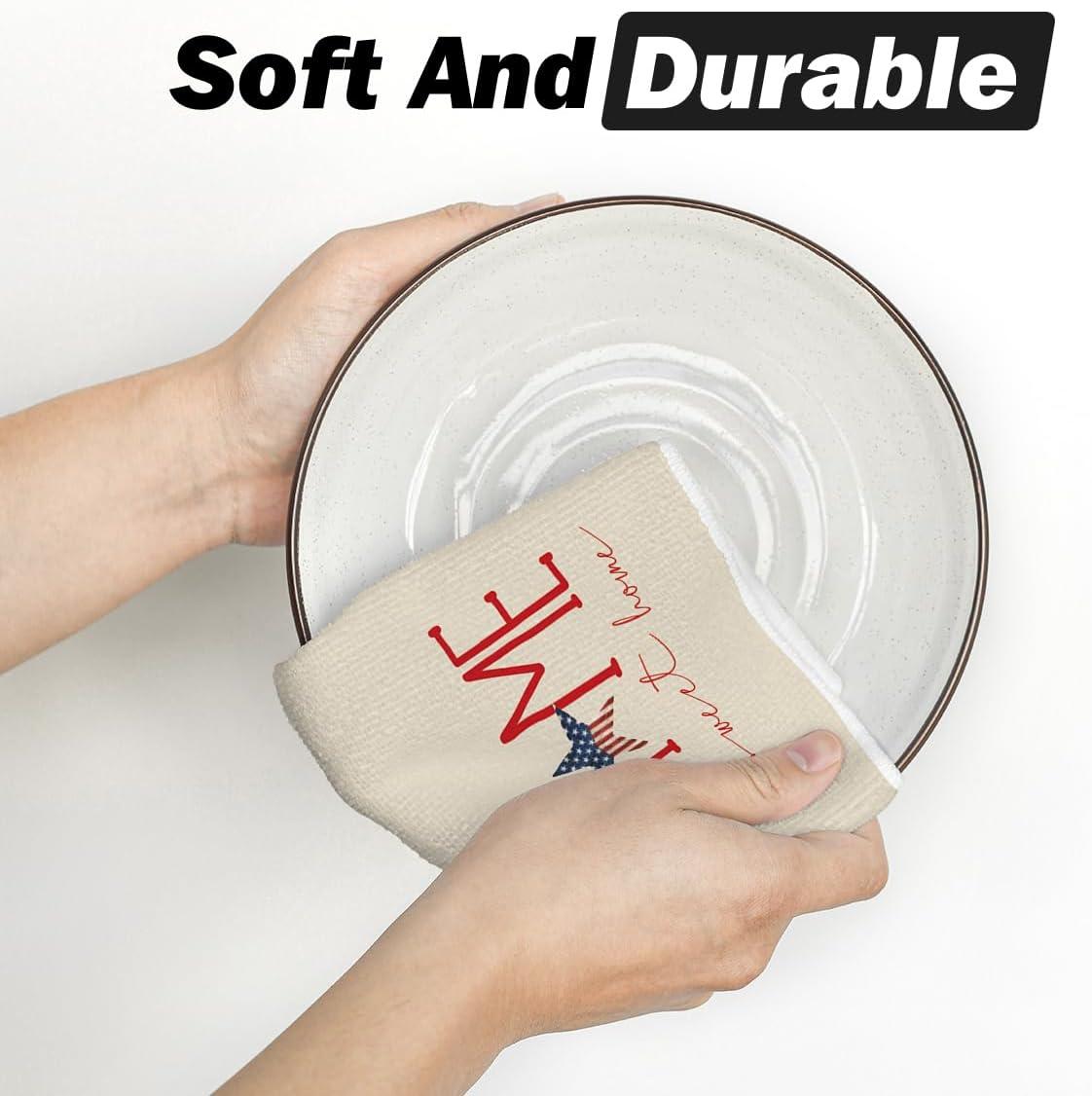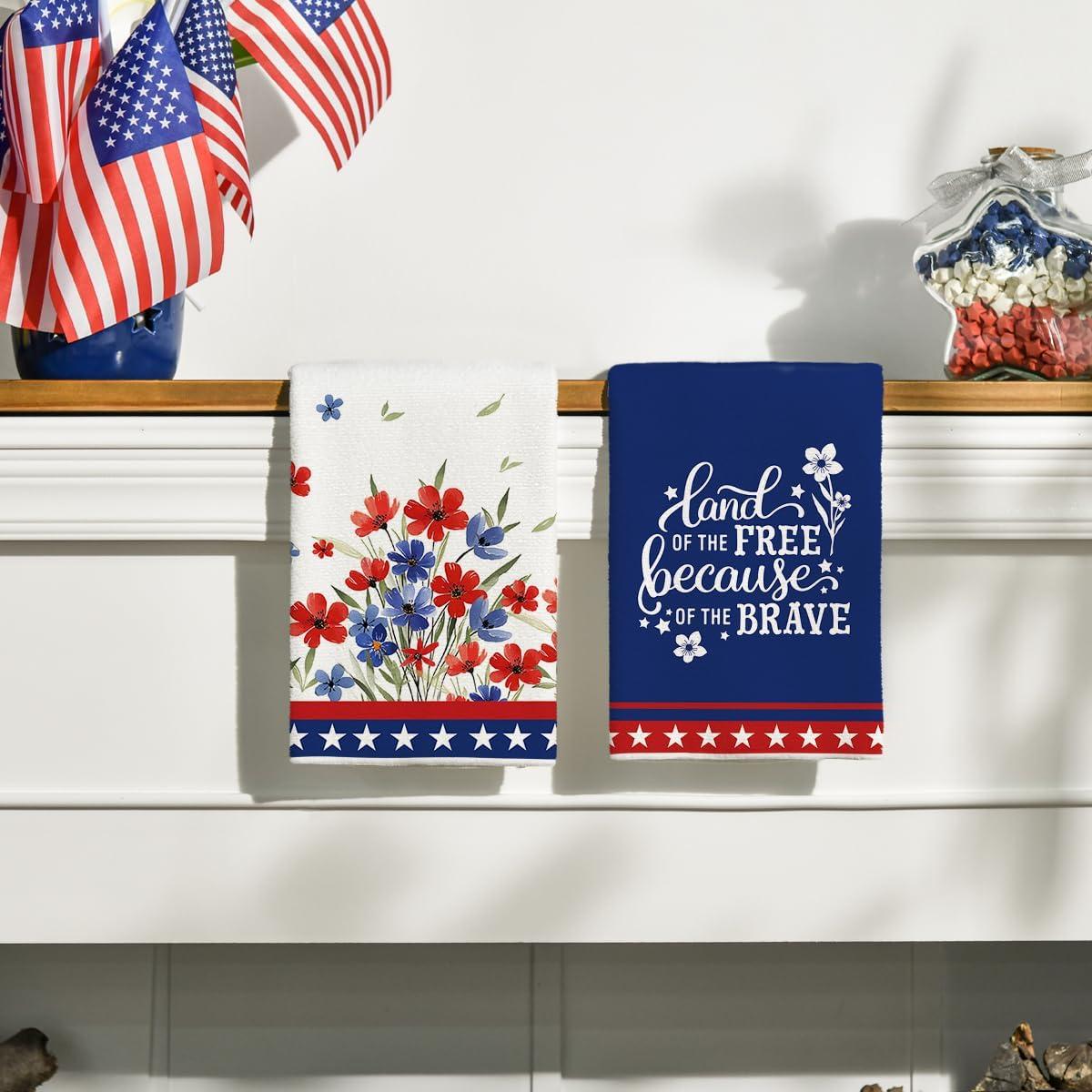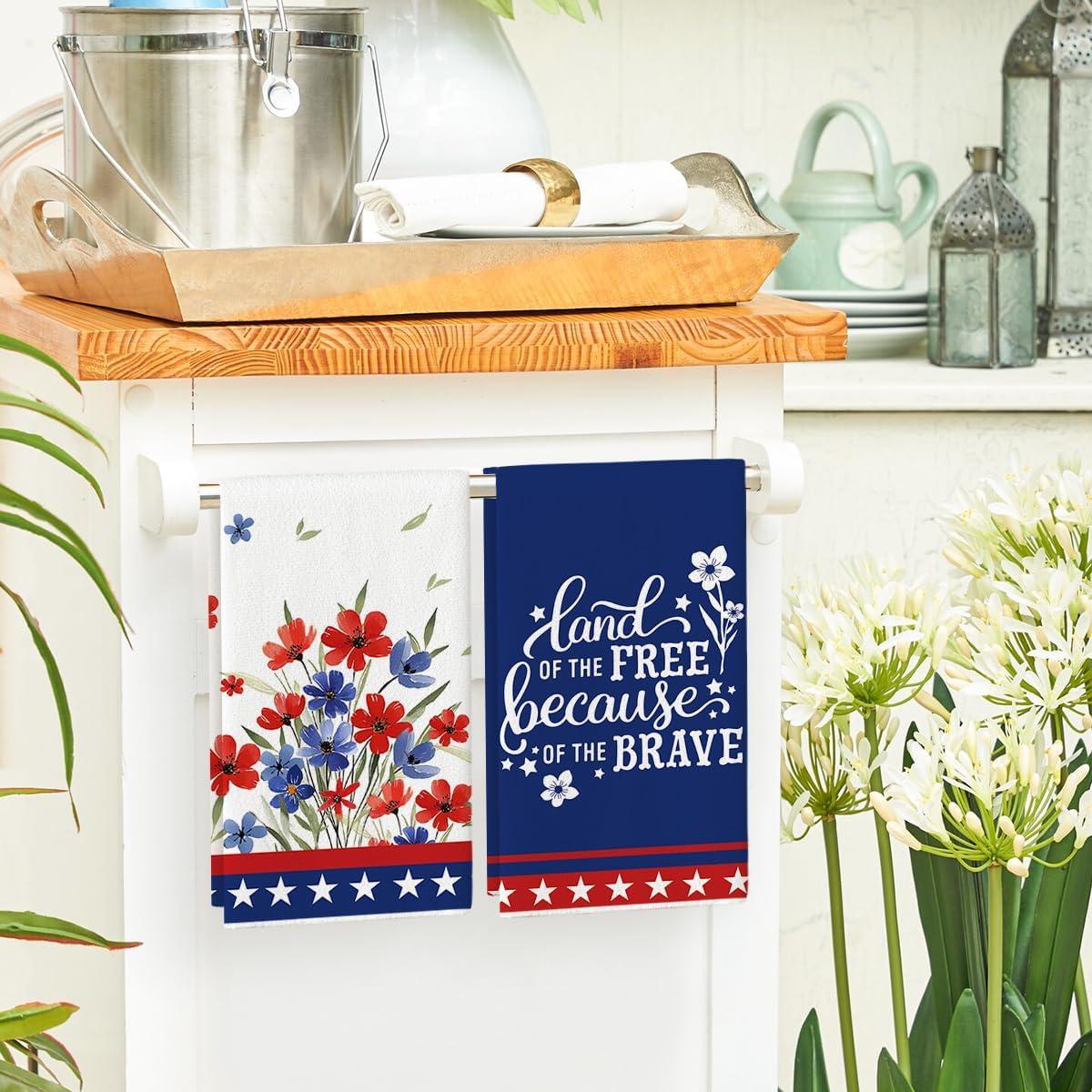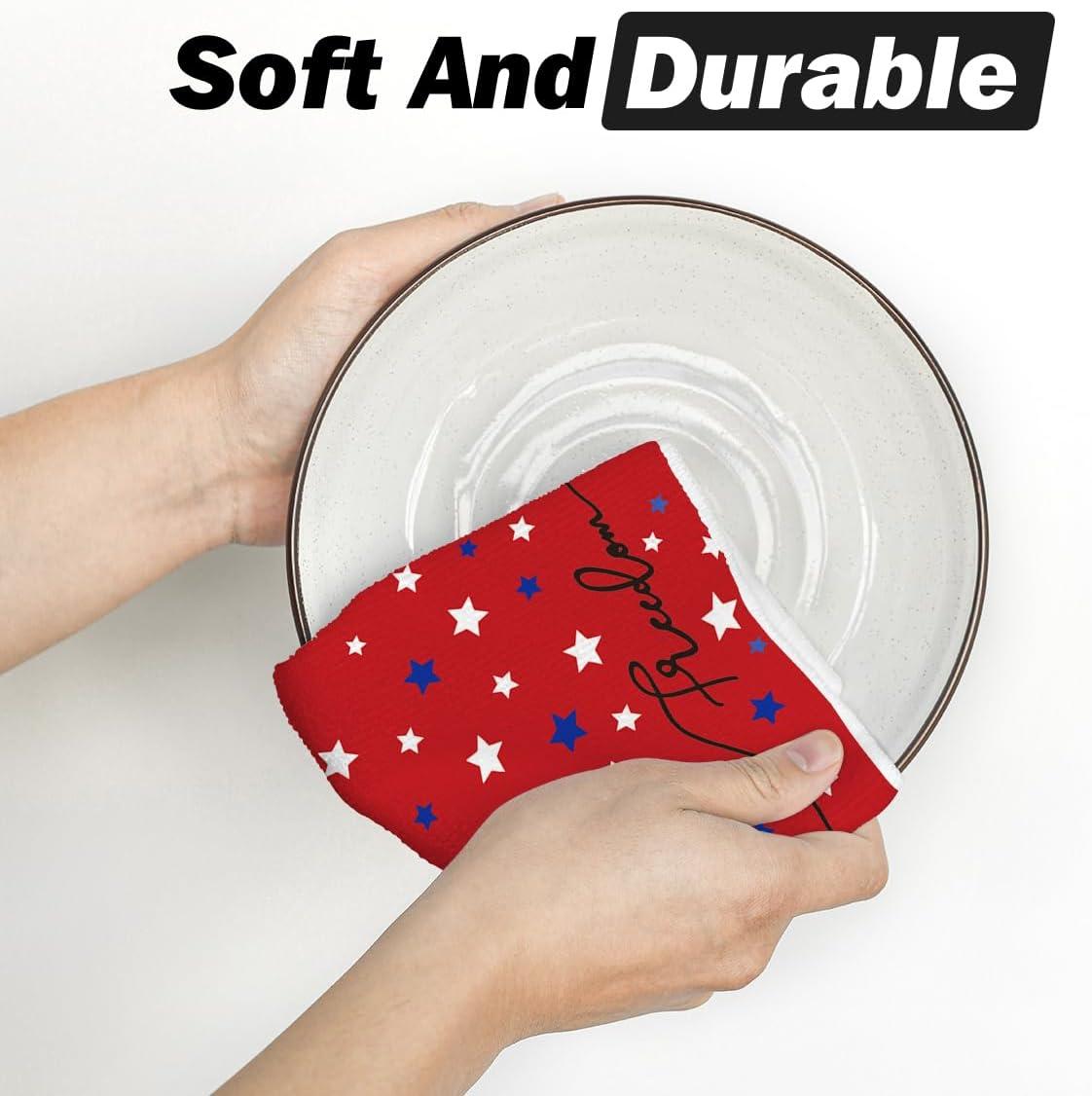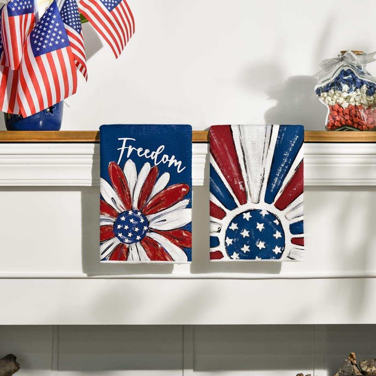 Artoid Mode America Stars Home Patriotic 4th of July Kitchen Towels Dish Towels, 18×26 Inch Memorial Day Decoration Hand Towels Set of 2