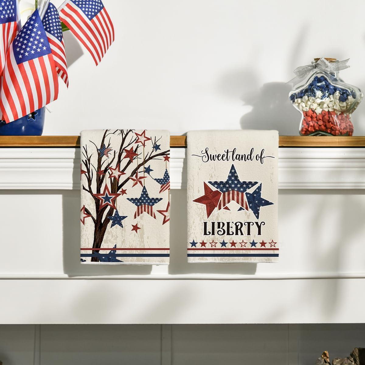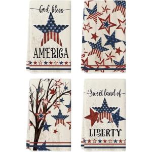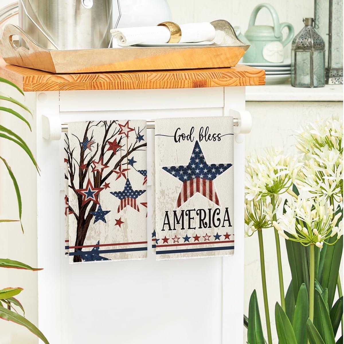 Artoid Mode America Stars Tree Patriotic 4th of July Kitchen Towels Dish Towels, 18×26 Inch Farmhouse Memorial Day Decoration Hand Towels Set of 4
