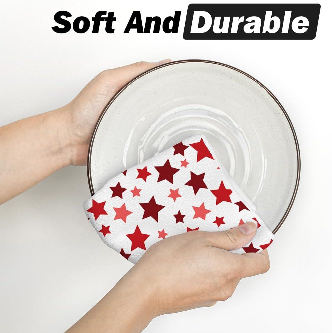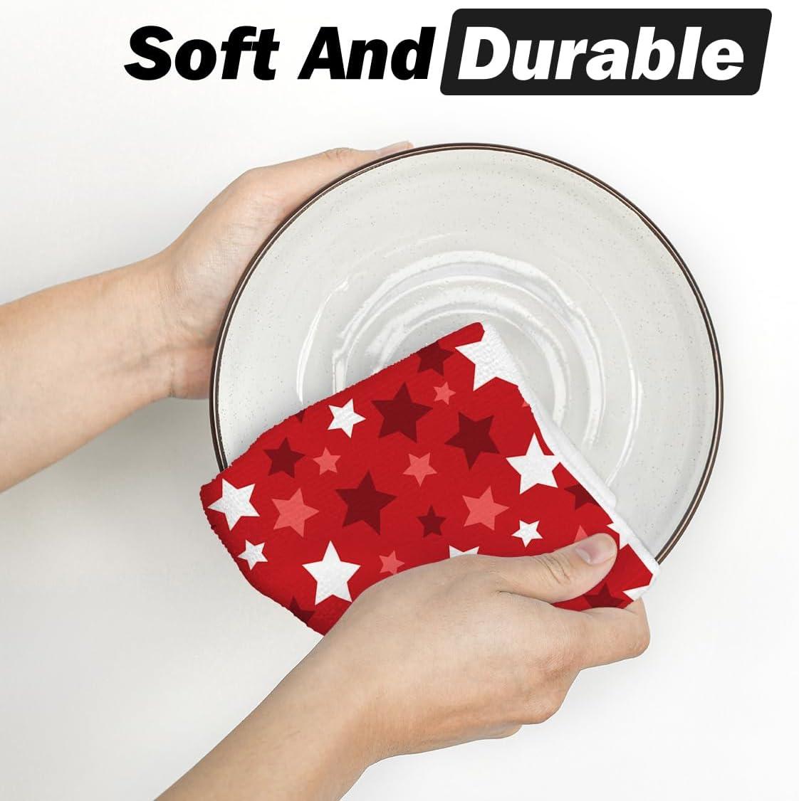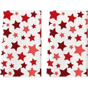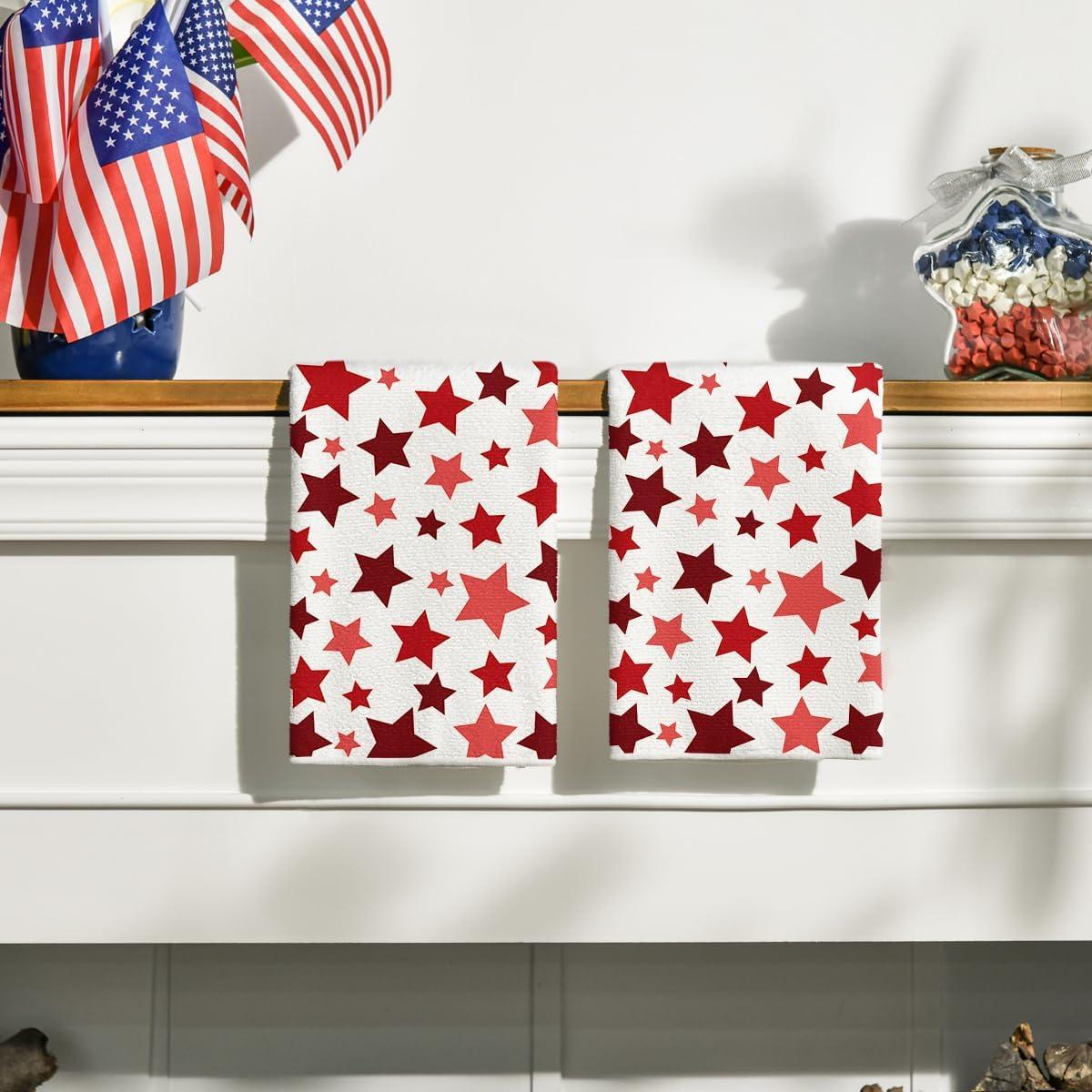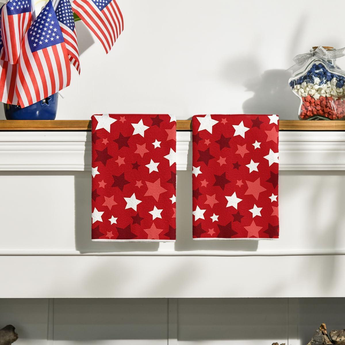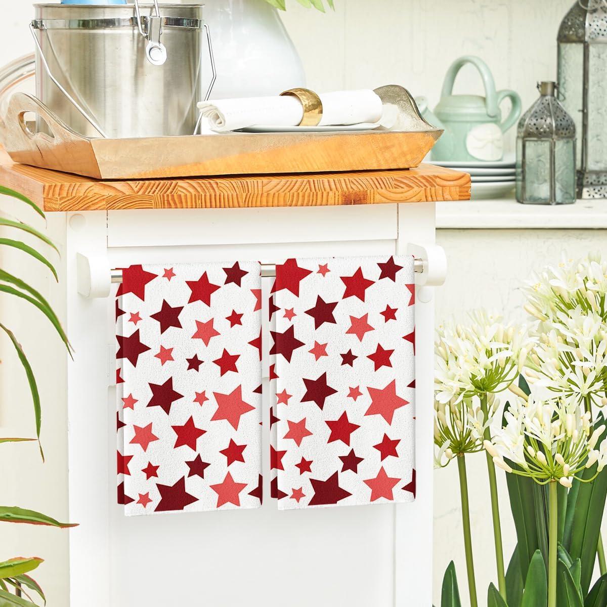Artoid Mode Red Stars America Patriotic 4th of July Kitchen Towels Dish Towels, 18×26 Inch Farmhouse Memorial Day Decoration Hand Towels Set of 2(Red)