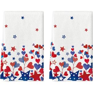 Artoid Mode Stripes American Stars Heart 4th of July Kitchen Towels Dish Towels, 18×26 Inch Patriotic Memorial Day Decoration Hand Towels Set of 2