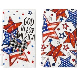 Artoid Mode American Flag Stars 4th of July Kitchen Towels Dish Towels, 18×26 Inch God Bless Memorial Day Decoration Hand Towels Set of 2