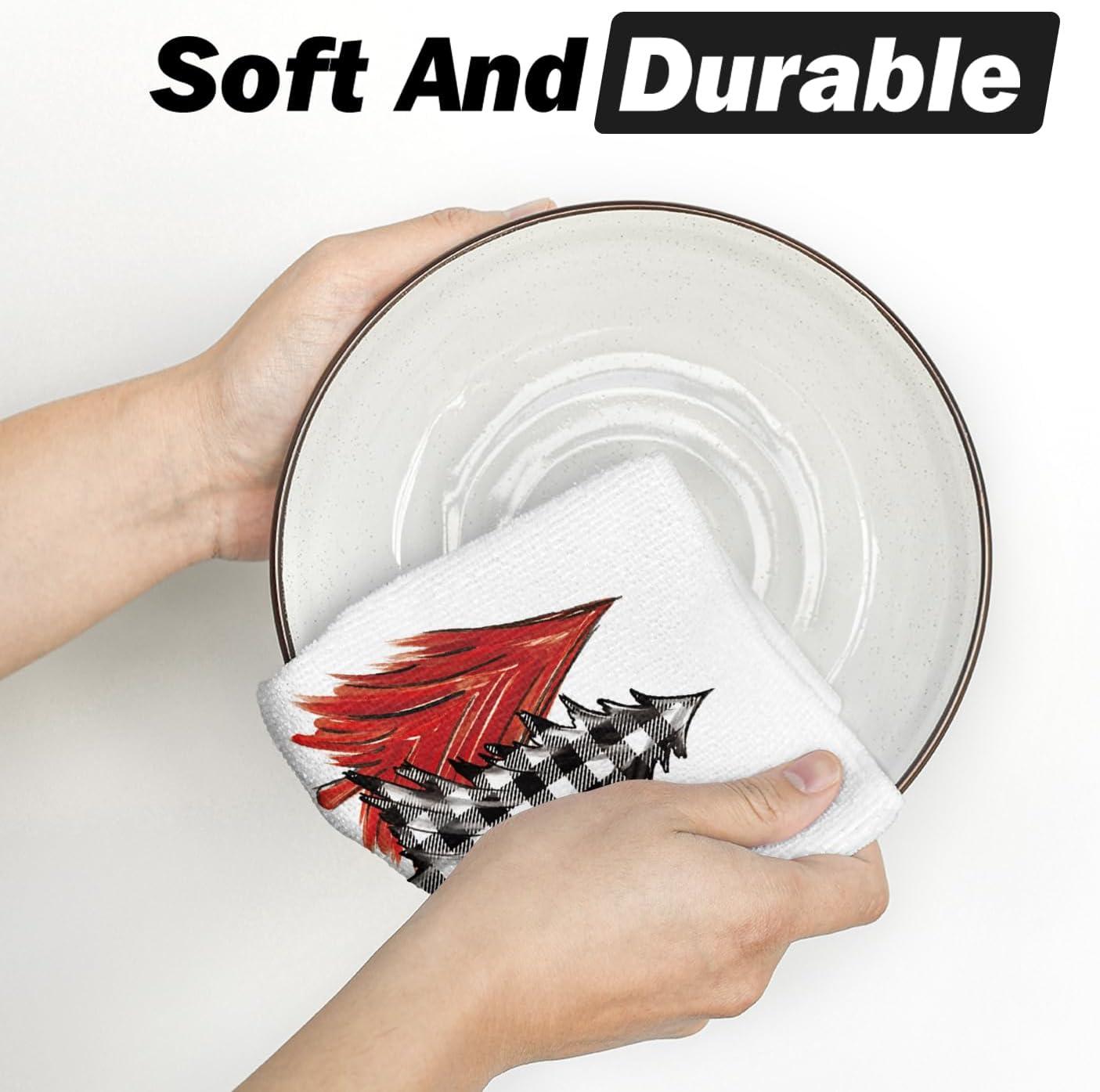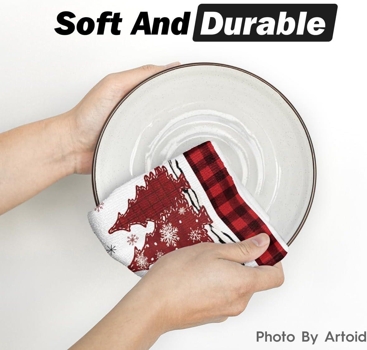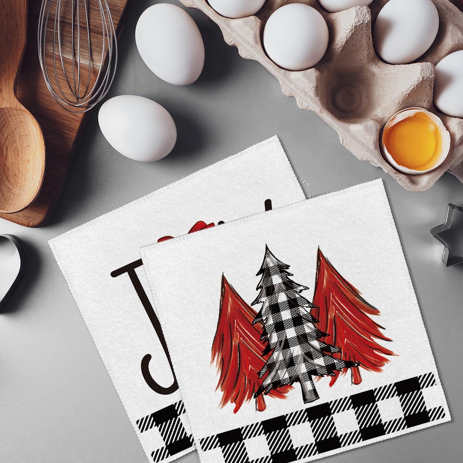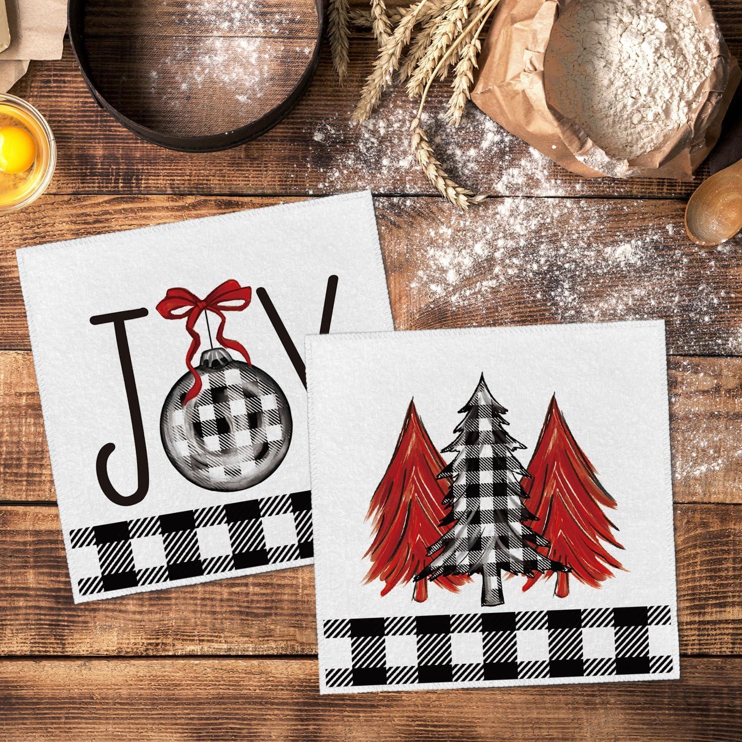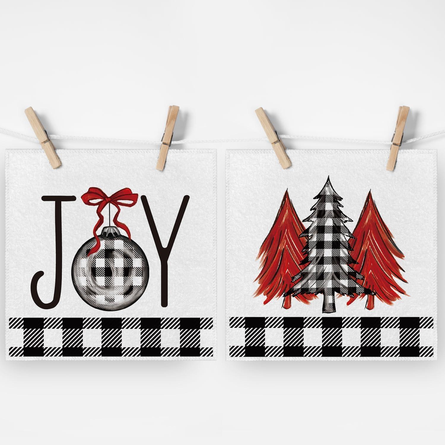 Artoid Mode Black White Buffalo Plaid Xmas Trees Joy Christmas Kitchen Towels Dish Towels, 18×26 Inch Seasonal Winter Decoration Hand Towels Set of 2(Red/Black)