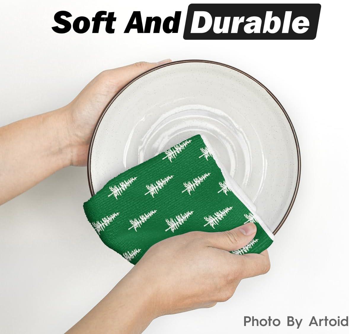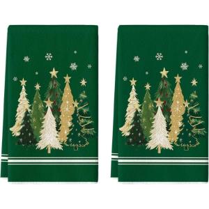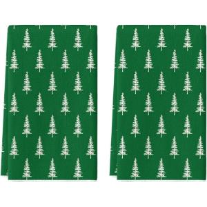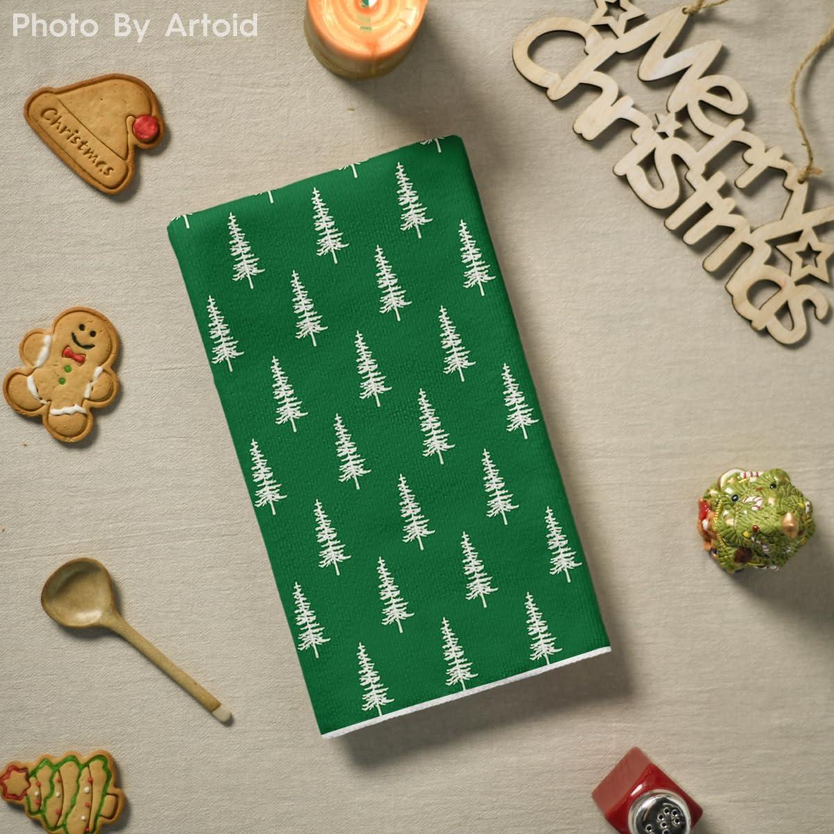 Artoid Mode Dark Green Xmas Trees Christmas Kitchen Towels Dish Towels, 18×26 Inch Holiday Farmhouse Winter Decoration Cleaning Set of 2(Dark Green)