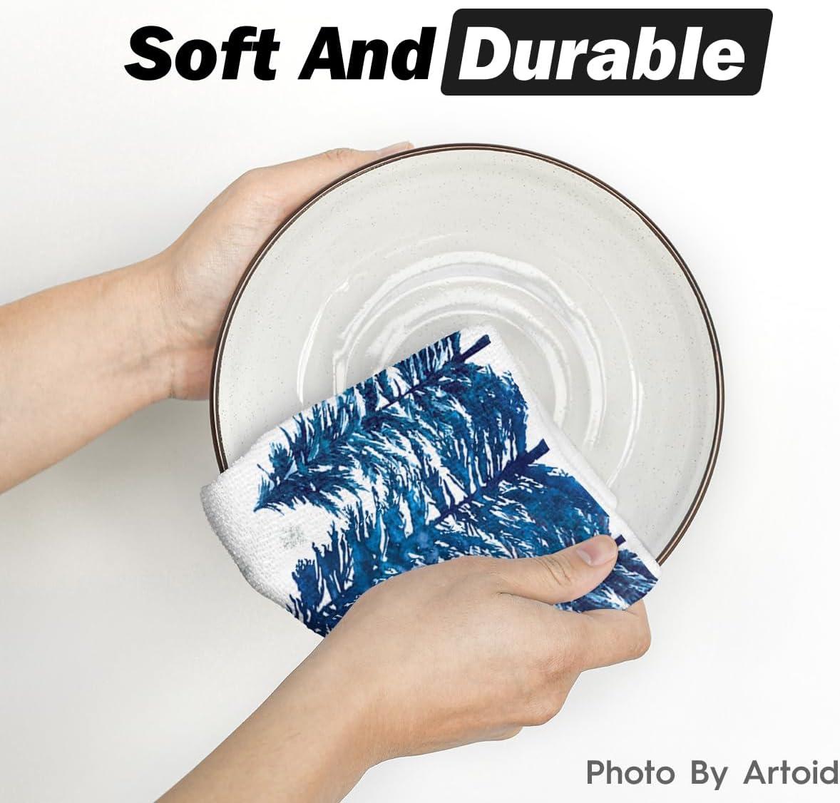 Artoid Mode Blue Xmas Tree Christmas Kitchen Towels Dish Towels, 18×26 Inch Farmhouse Holiday Snowflake Winter Decoration Cleaning Set of 2(Blue)