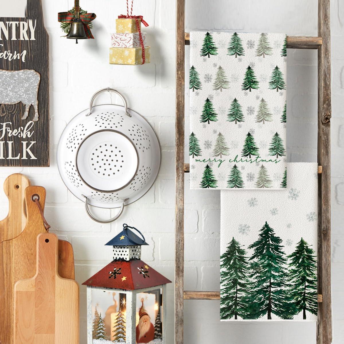 Artoid Mode Dark Green Xmas Trees Christmas Kitchen Towels Dish Towels, 18×26 Inch Holiday Farmhouse Winter Decoration Cleaning Set of 2(Beige)