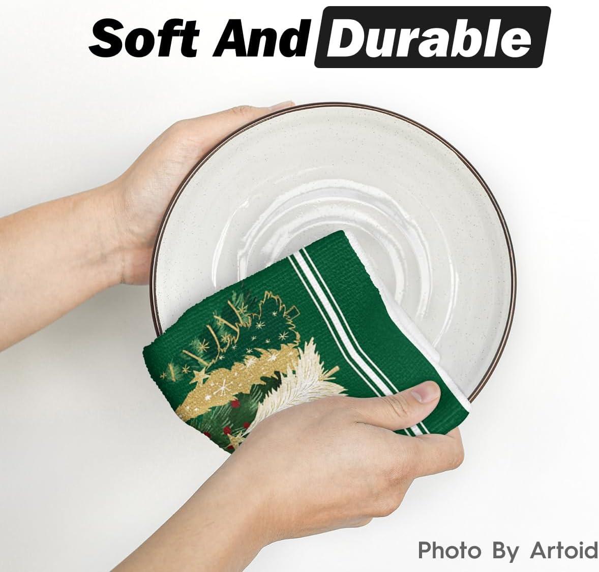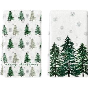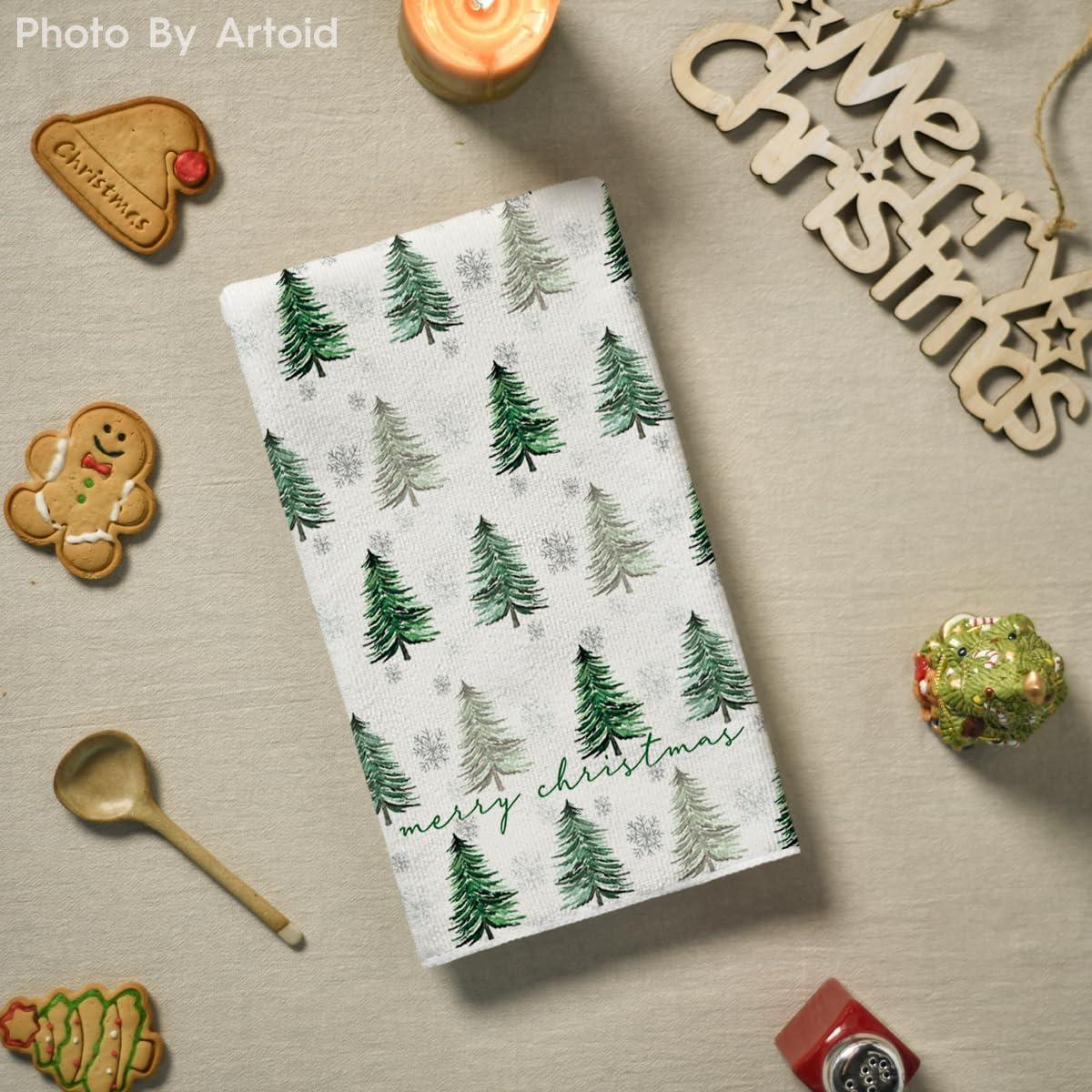 Artoid Mode Beige Xmas Tree Merry Christmas Kitchen Towels Dish Towels, 18×26 Inch Holiday Daily Winter Decoration Hand Towels Set of 2(Green)