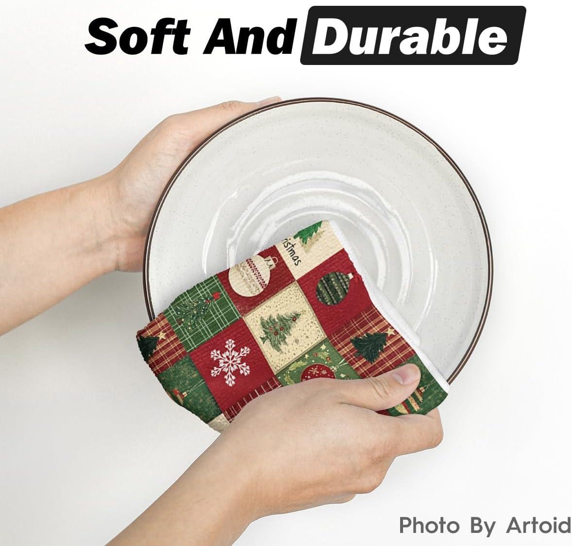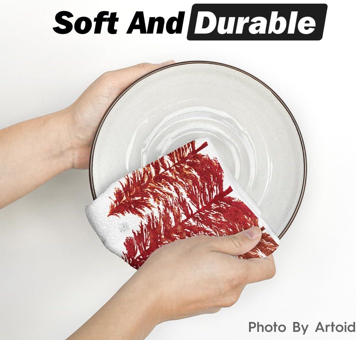 Artoid Mode Blue Xmas Tree Christmas Kitchen Towels Dish Towels, 18×26 Inch Farmhouse Holiday Snowflake Winter Decoration Cleaning Set of 2(Red)
