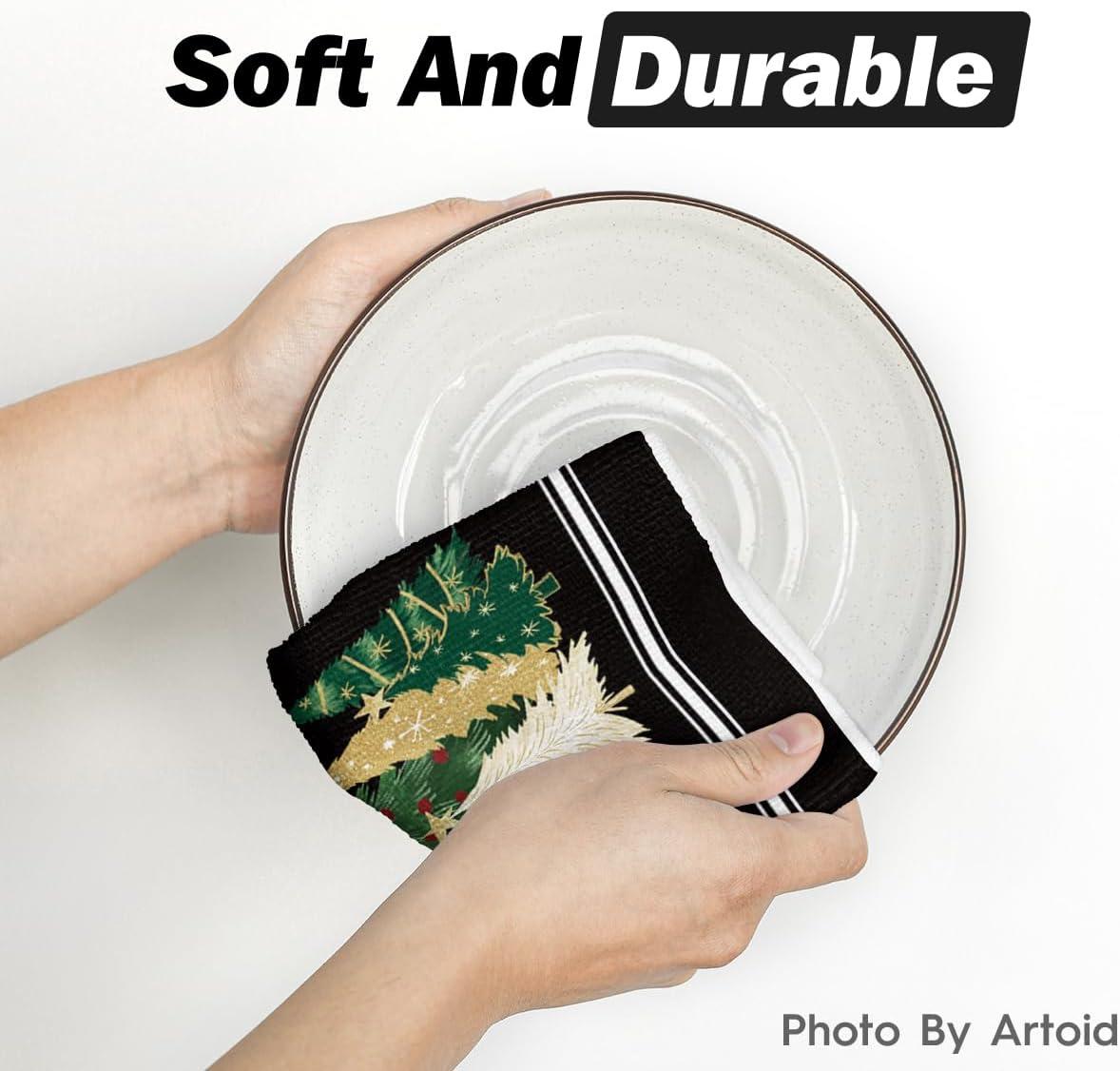 Artoid Mode Dark Green Xmas Trees Christmas Kitchen Towels Dish Towels, 18×26 Inch Holiday Farmhouse Winter Decoration Cleaning Set of 2(Black)