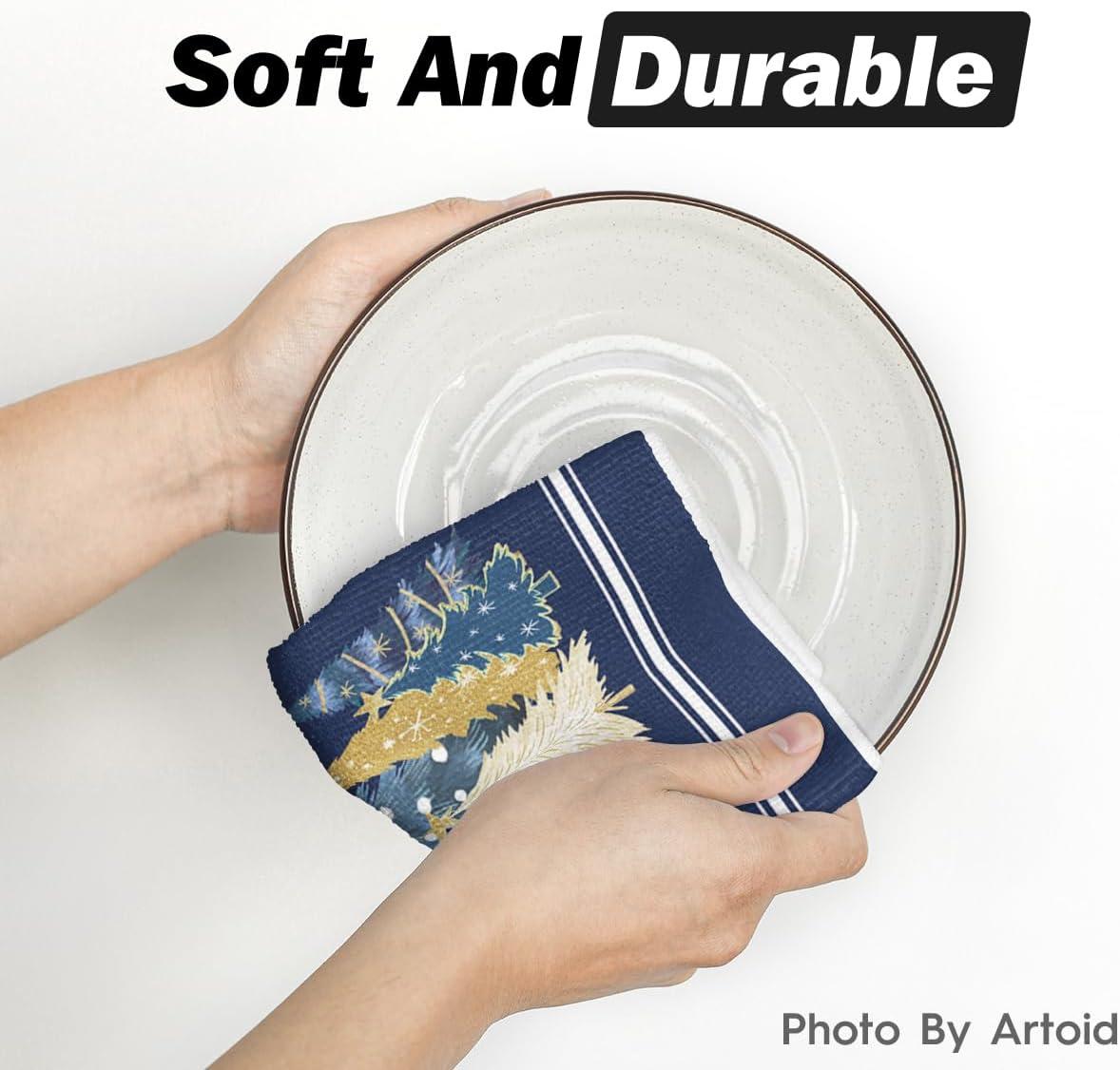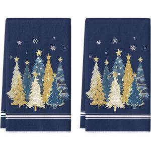 Artoid Mode Blue Xmas Tree Star Christmas Kitchen Towels Dish Towels, 18×26 Inch Farmhouse Snowflakes Decoration Cleaning Set of 2(Black)