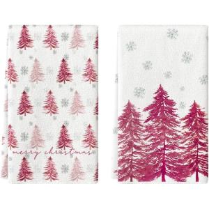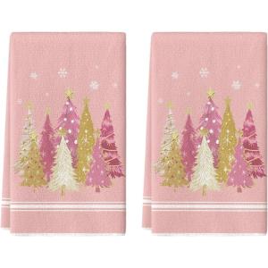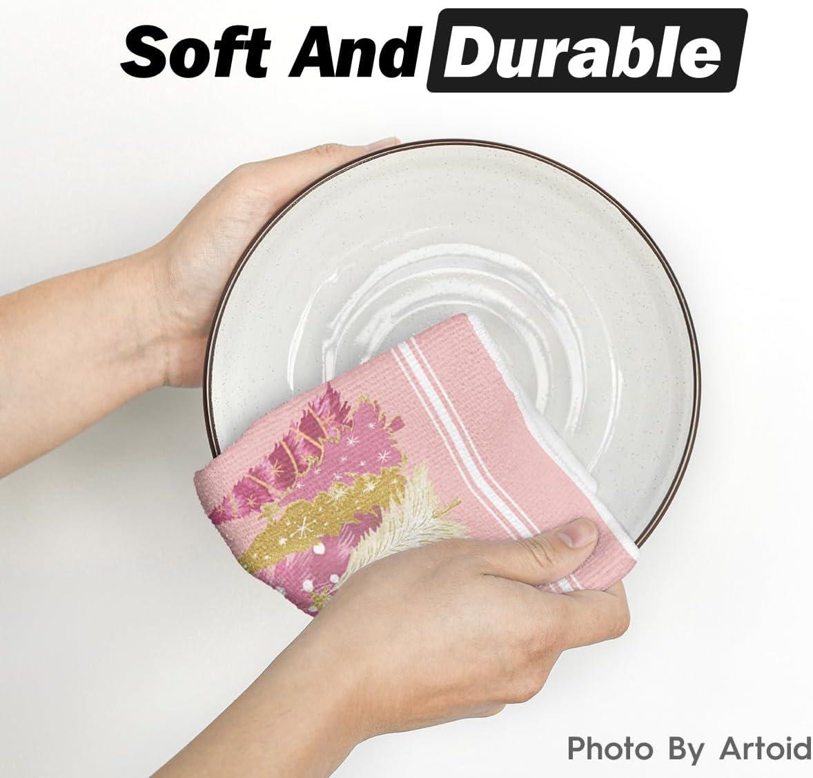Artoid Mode Blue Xmas Tree Christmas Kitchen Towels Dish Towels, 18×26 Inch Farmhouse Holiday Snowflake Winter Decoration Cleaning Set of 2(Pink)