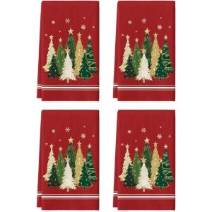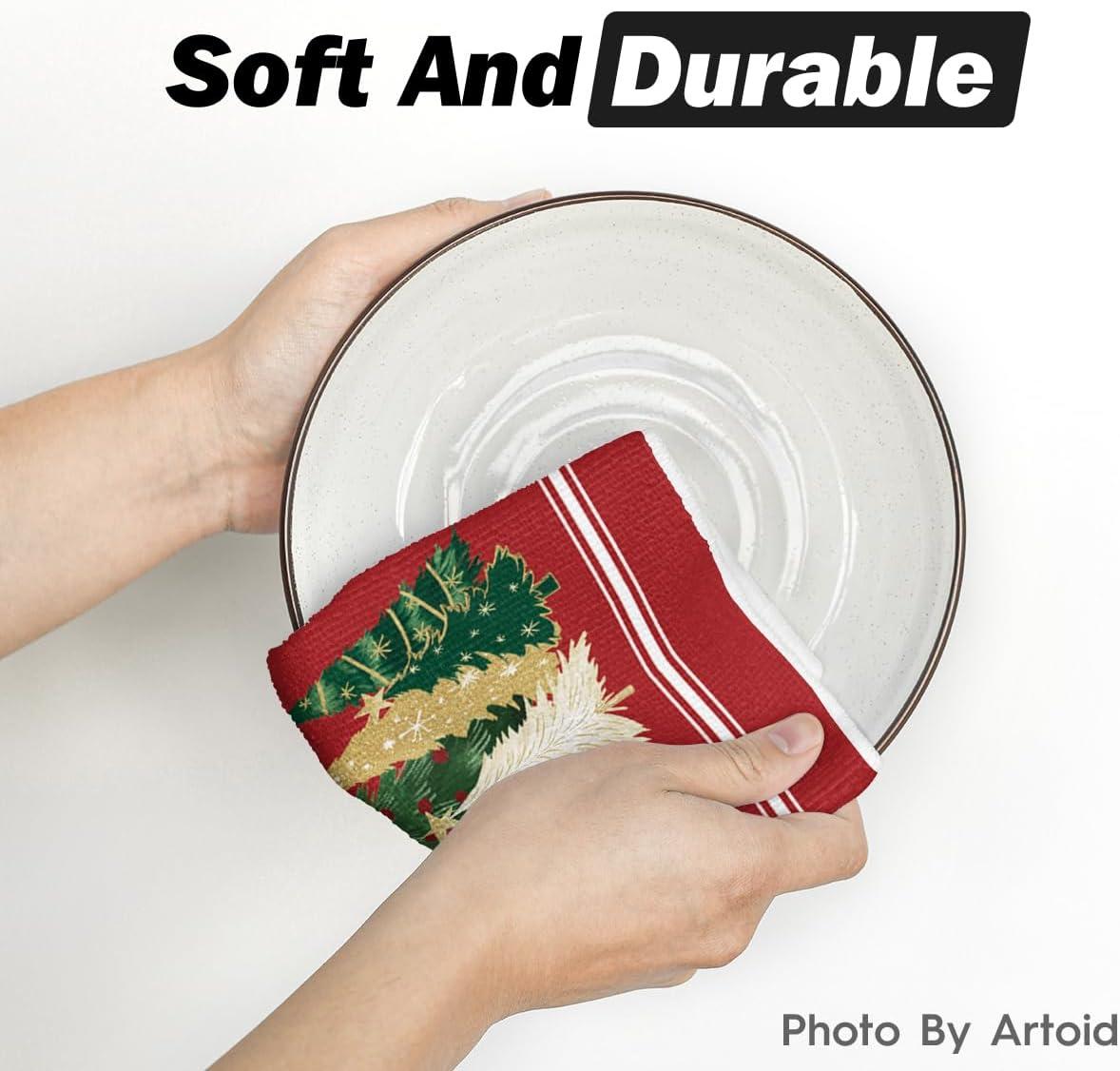 Artoid Mode Beige Star Xmas Tree Merry Christmas Kitchen Towels Dish Towels, 18×26 Inch Farmhouse Holiday Winter Decoration Cleaning Set of 2(Red)