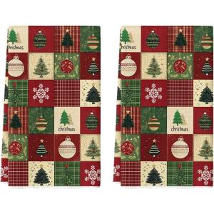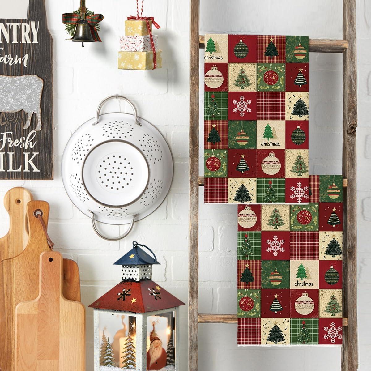 Artoid Mode Checkered Xmas Tree Ornaments Christmas Kitchen Towels Dish Towels, 18×26 Inch Farmhouse Holiday Snowflake Decoration Cleaning Set of 2