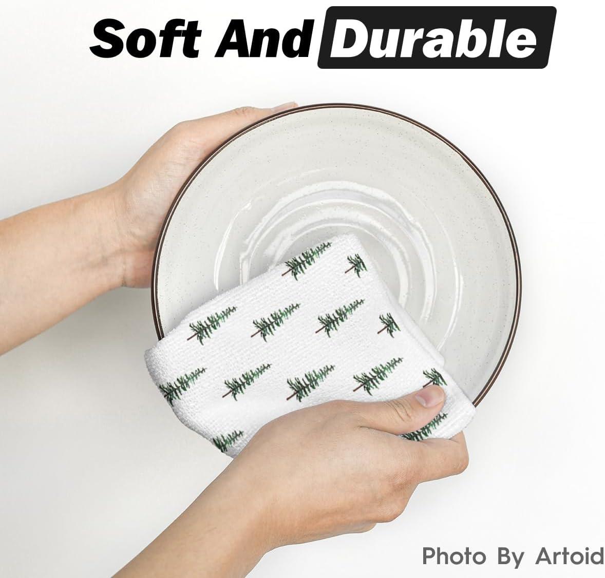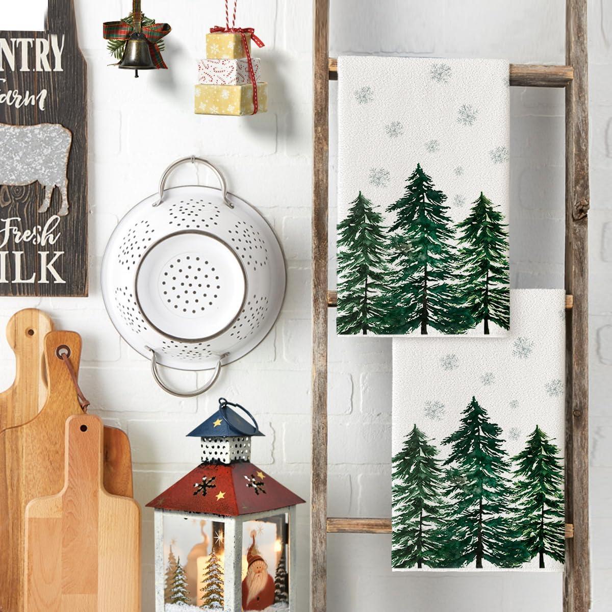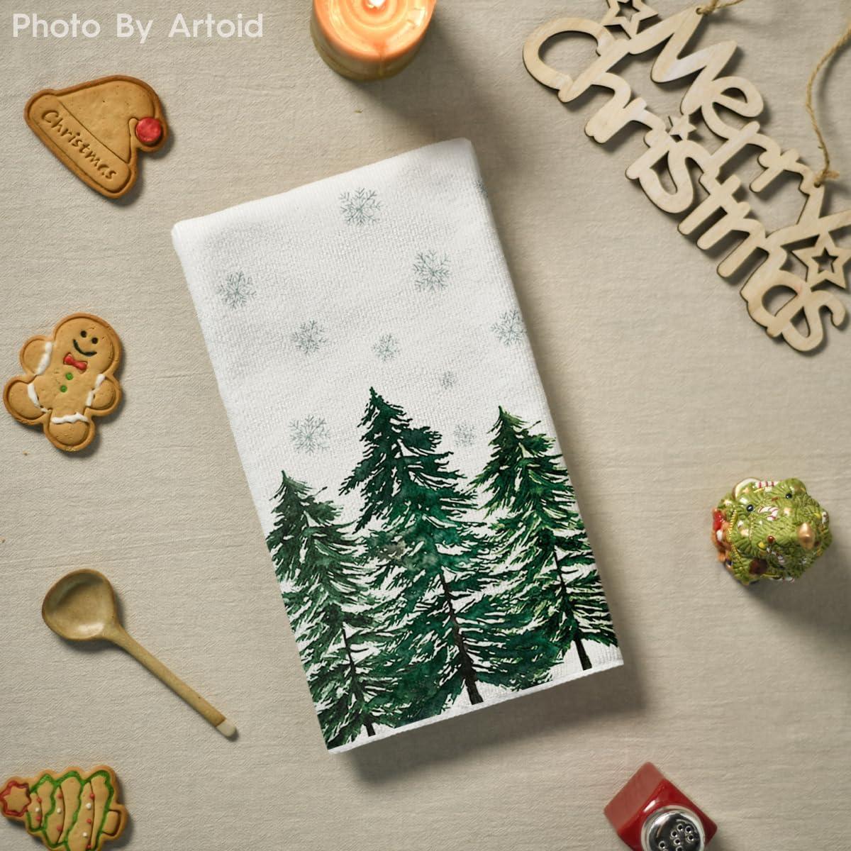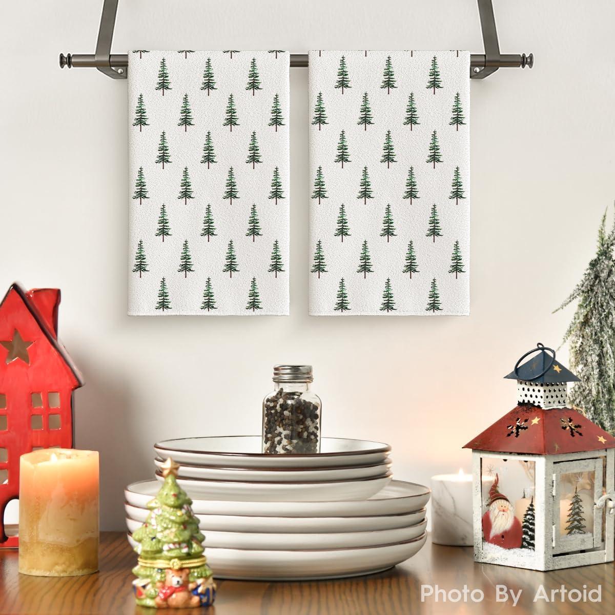 Artoid Mode Dark Green Xmas Trees Christmas Kitchen Towels Dish Towels, 18×26 Inch Holiday Farmhouse Winter Decoration Cleaning Set of 2(Green)