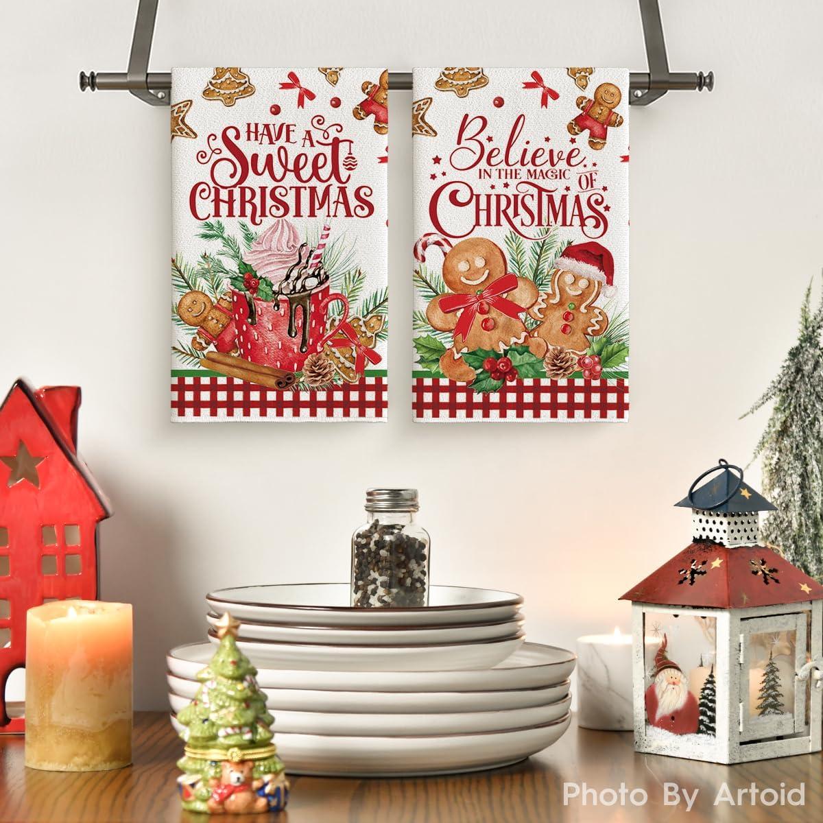 Artoid Mode Hot Coco Xmas Gingerbread Have A Sweet Christmas Kitchen Towels Dish Towels, 18×26 Inch Daily Seasonal Winter Decoration Hand Towels Set of 2