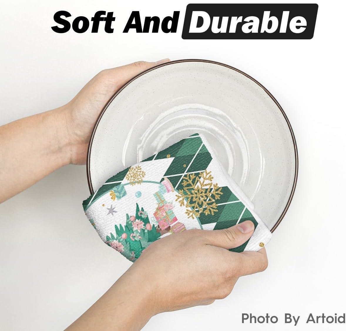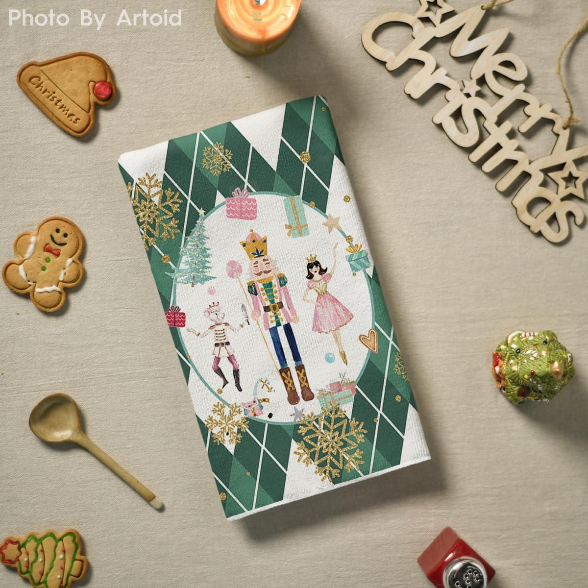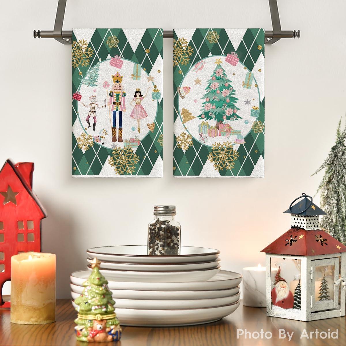 Artoid Mode Pink Nutcrackers Tree Christmas Kitchen Towels Dish Towels, 18×26 Inch Seasonal Winter Xmas Decoration Hand Towels Set of 2(Green)