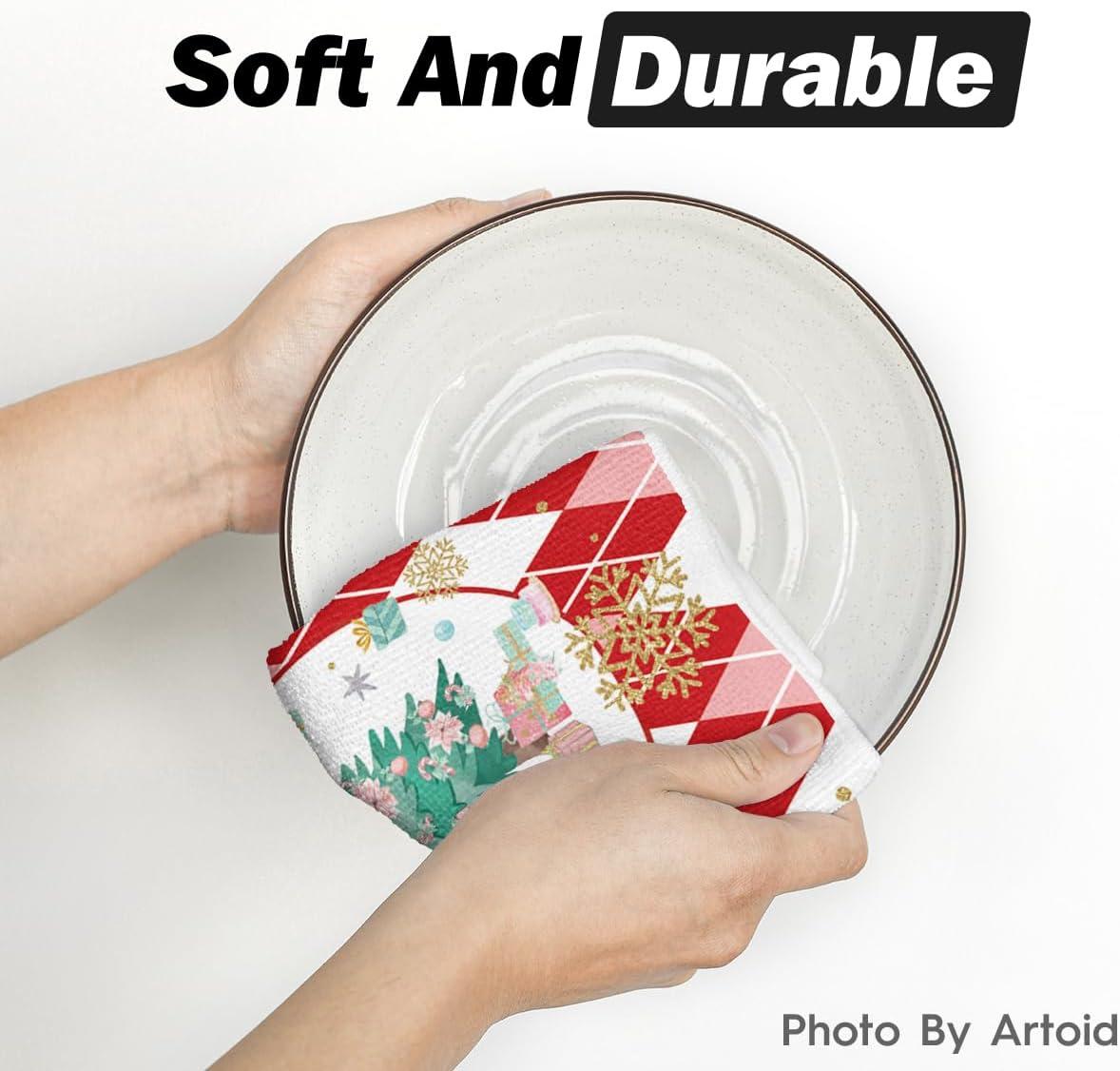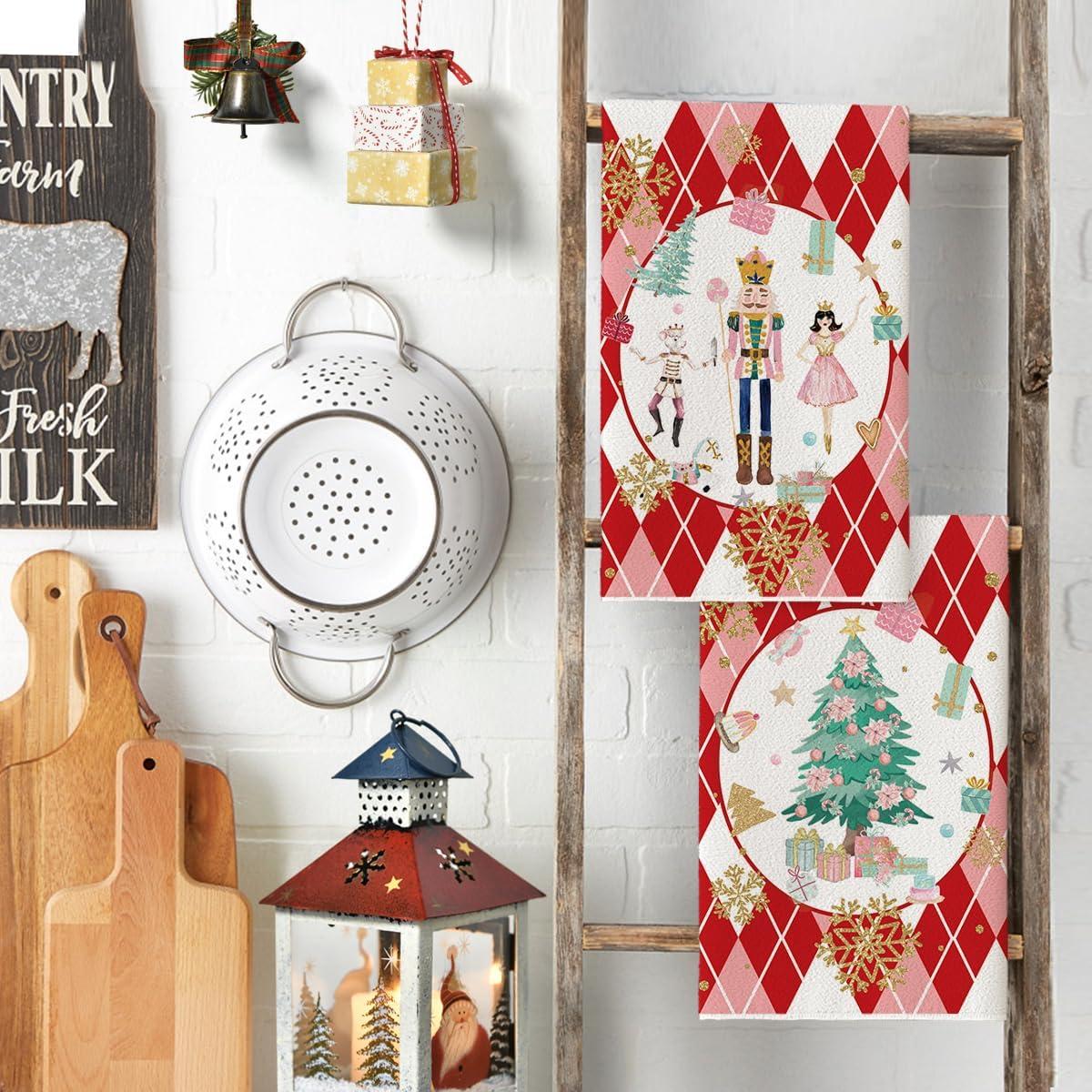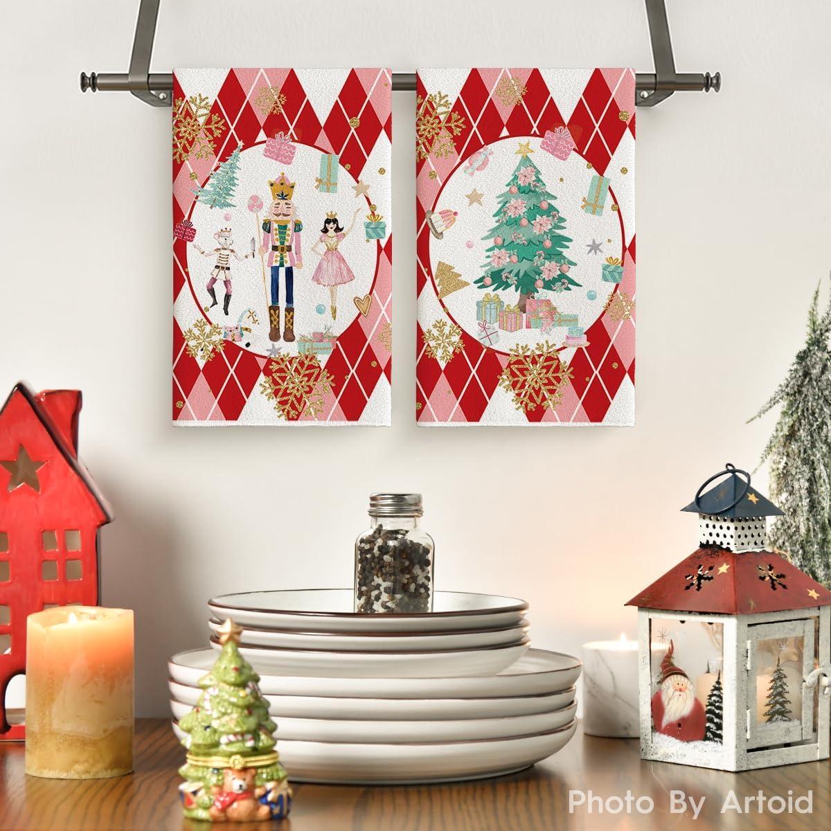 Artoid Mode Pink Nutcrackers Tree Christmas Kitchen Towels Dish Towels, 18×26 Inch Seasonal Winter Xmas Decoration Hand Towels Set of 2(Red)