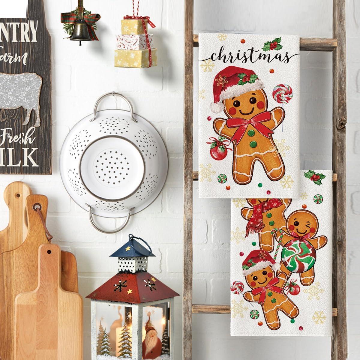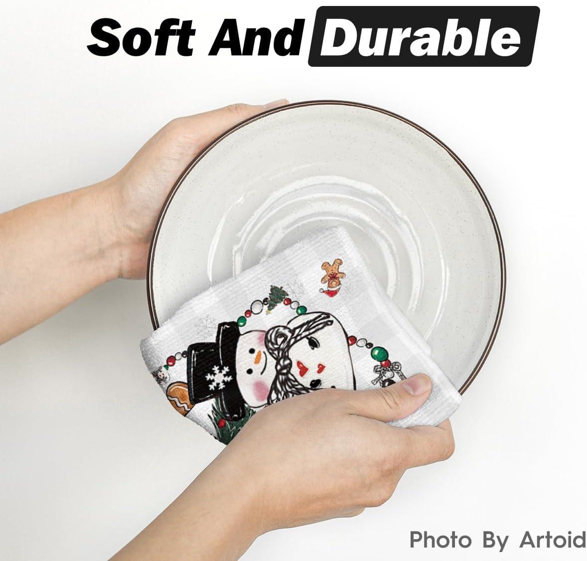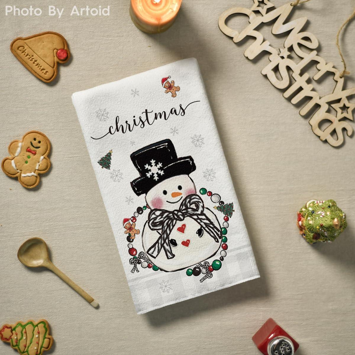 Artoid Mode Gingerbread Snowman Xmas Tree Christmas Kitchen Towels Dish Towels, 18×26 Inch Farmhouse Holiday Winter Decoration Cleaning Set of 2