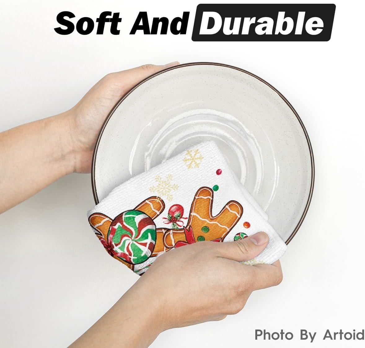 Artoid Mode Gingerbread Candy Christmas Kitchen Towels Dish Towels, 18×26 Inch Holiday Holly Xmas Ball Winter Decoration Hand Towels Set of 2(Beige)