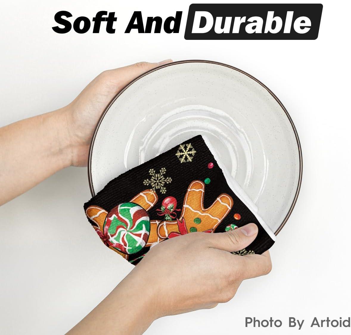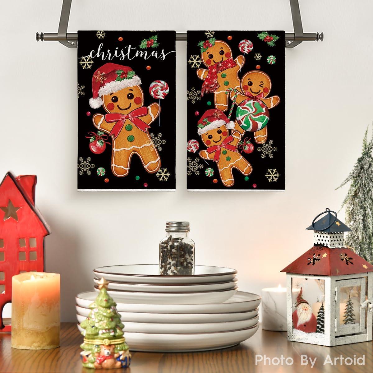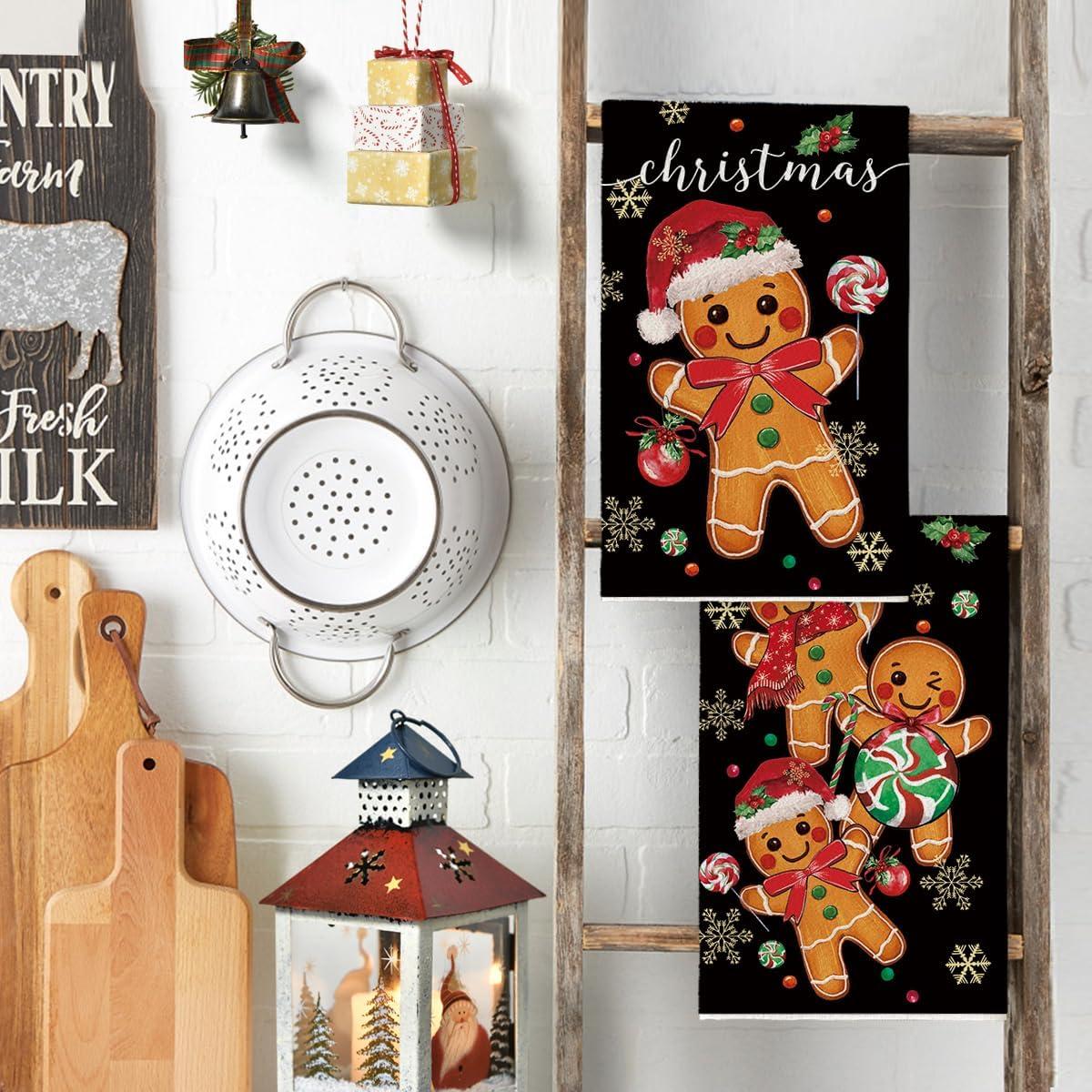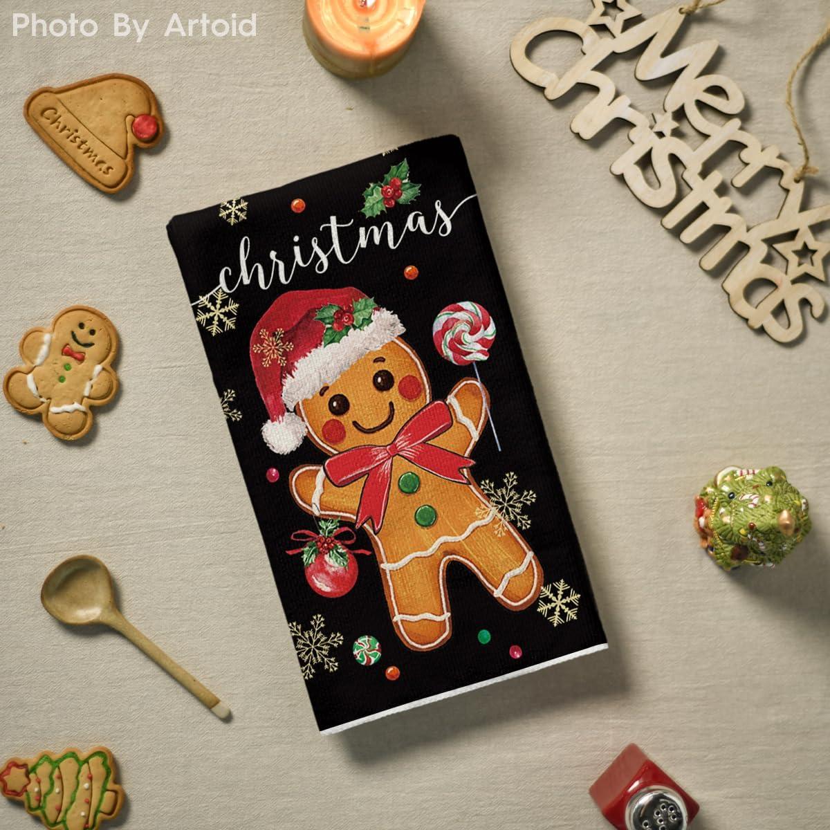 Artoid Mode Gingerbread Candy Christmas Kitchen Towels Dish Towels, 18×26 Inch Holiday Holly Xmas Ball Winter Decoration Hand Towels Set of 2(Black)