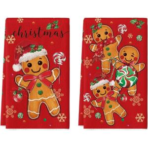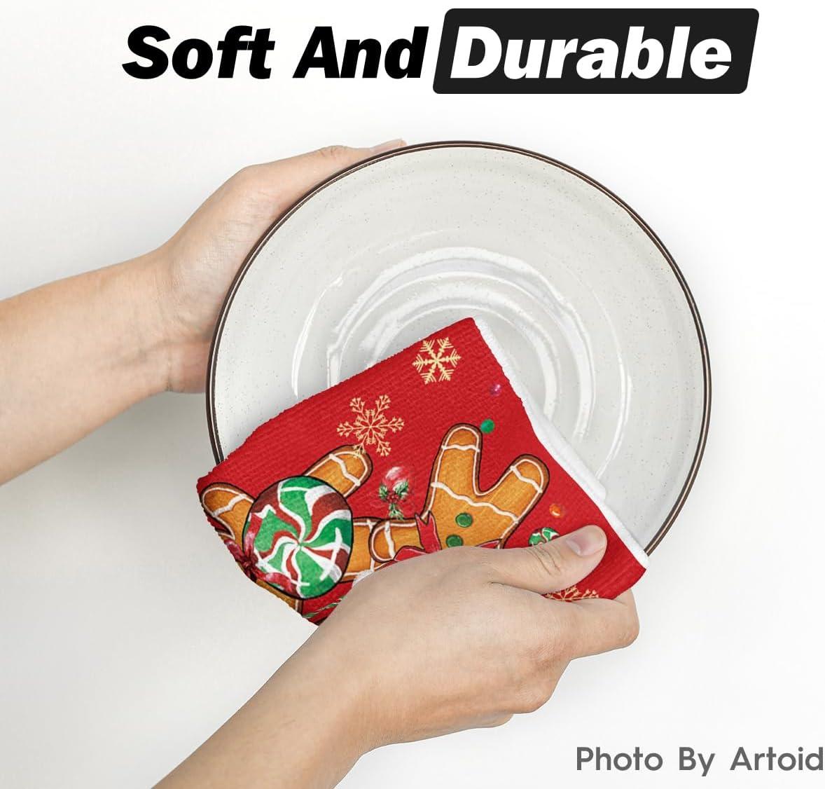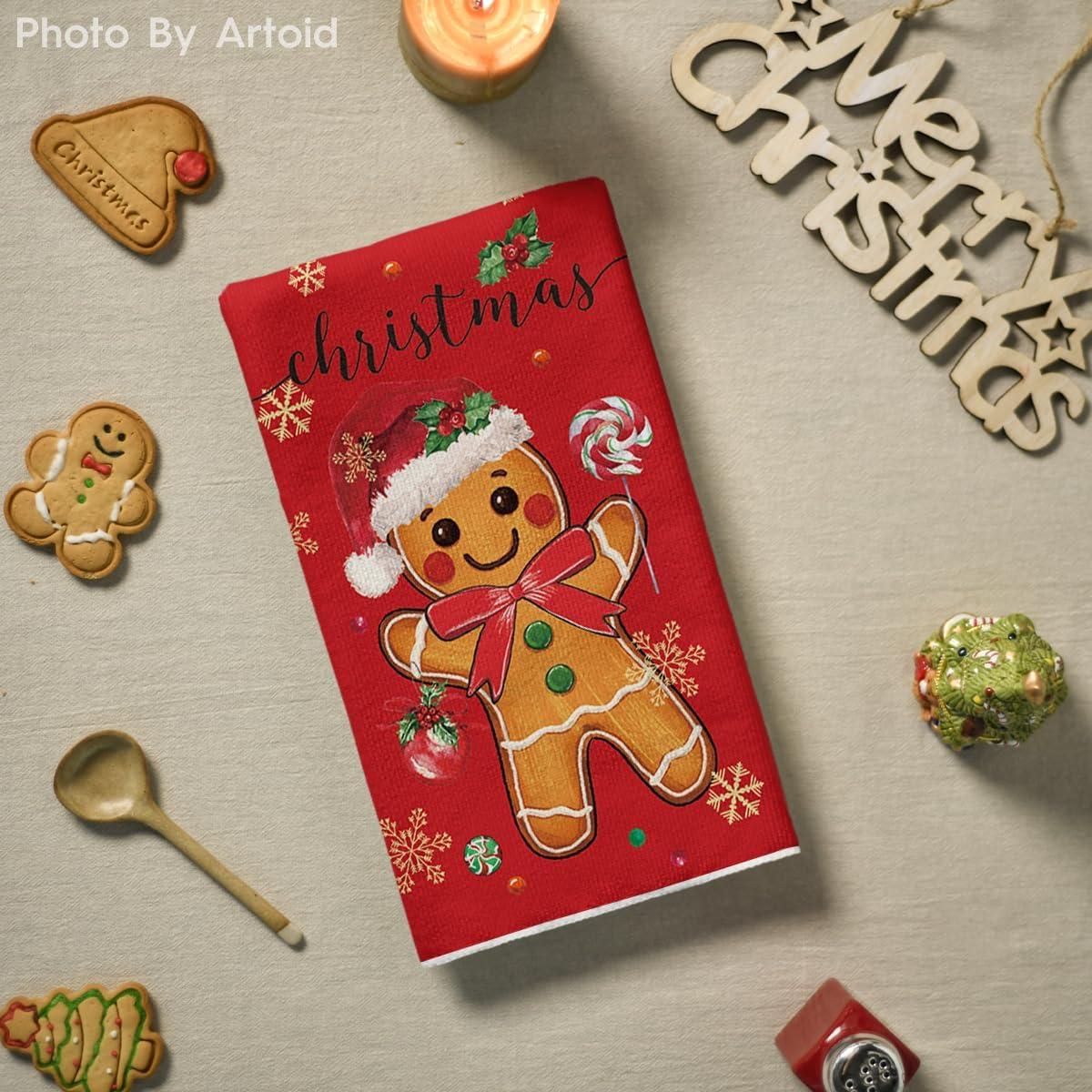 Artoid Mode Gingerbread Candy Christmas Kitchen Towels Dish Towels, 18×26 Inch Holiday Holly Xmas Ball Winter Decoration Hand Towels Set of 2(Red)