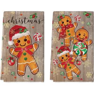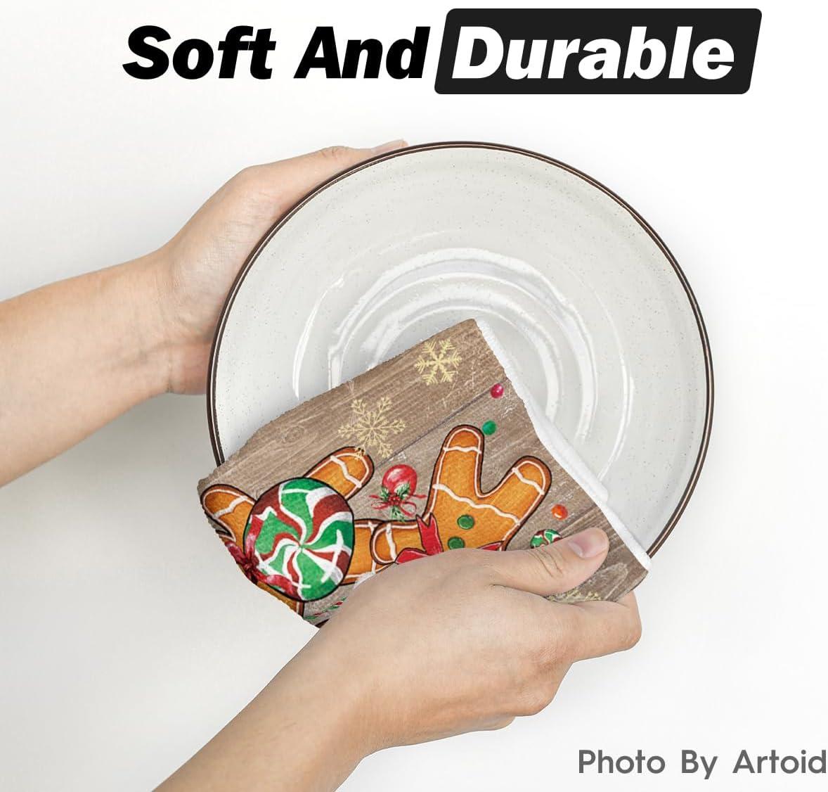Artoid Mode Gingerbread Candy Christmas Kitchen Towels Dish Towels, 18×26 Inch Holiday Holly Xmas Ball Winter Decoration Hand Towels Set of 2(Wood)