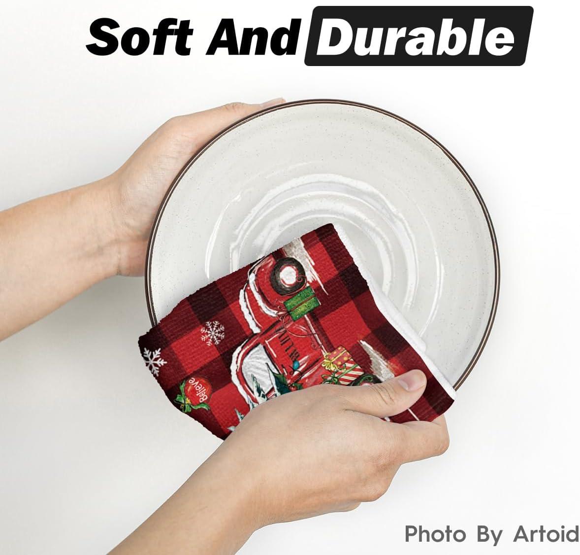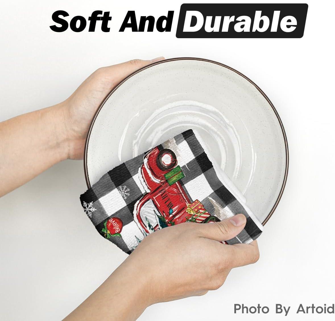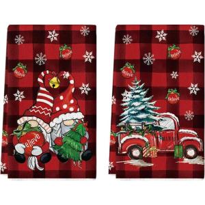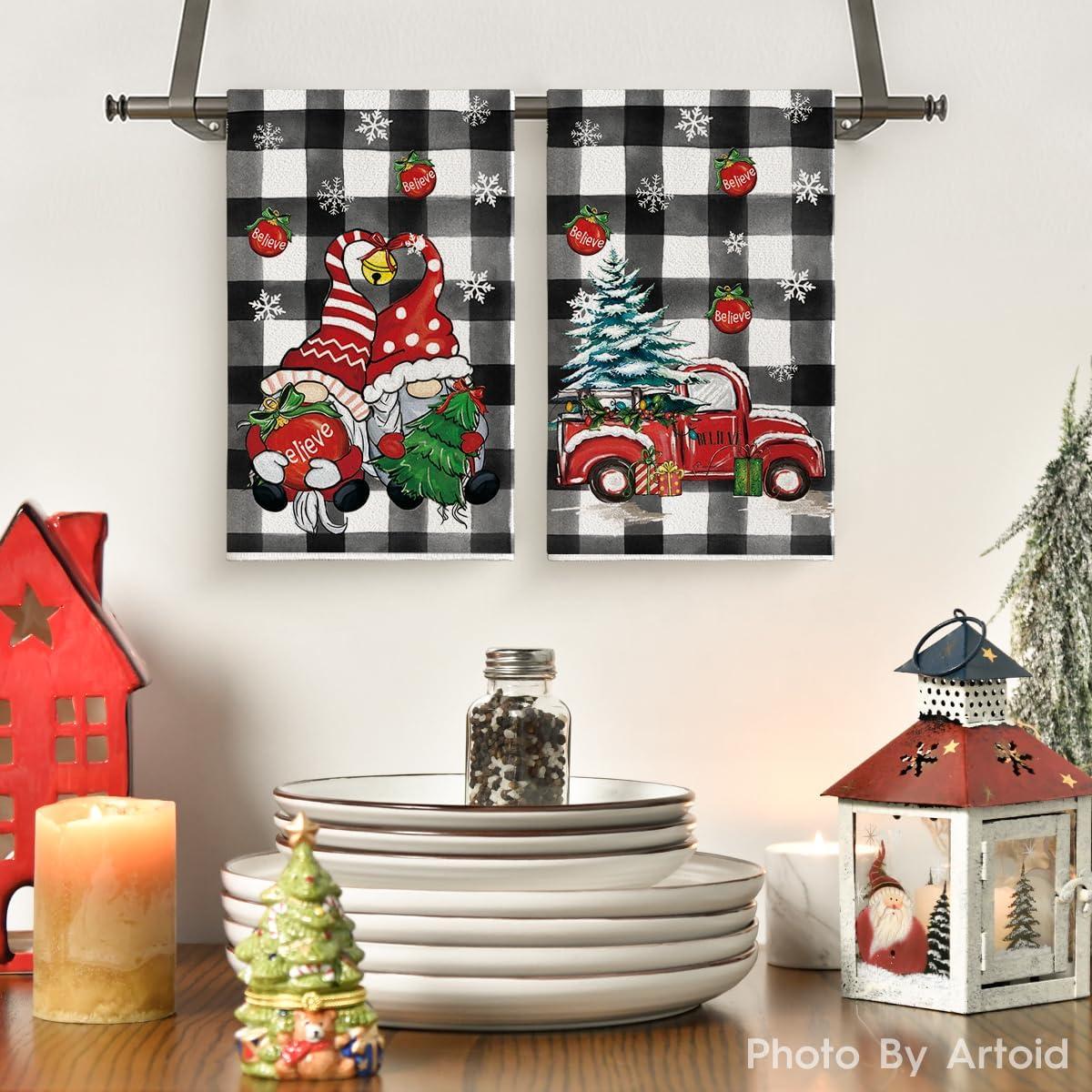 Artoid Mode Gnome Truck Christmas Kitchen Towels Dish Towels, 18×26 Inch Holiday Believe Xmas Tree Winter Decoration Hand Towels Set of 2(Red/Black)