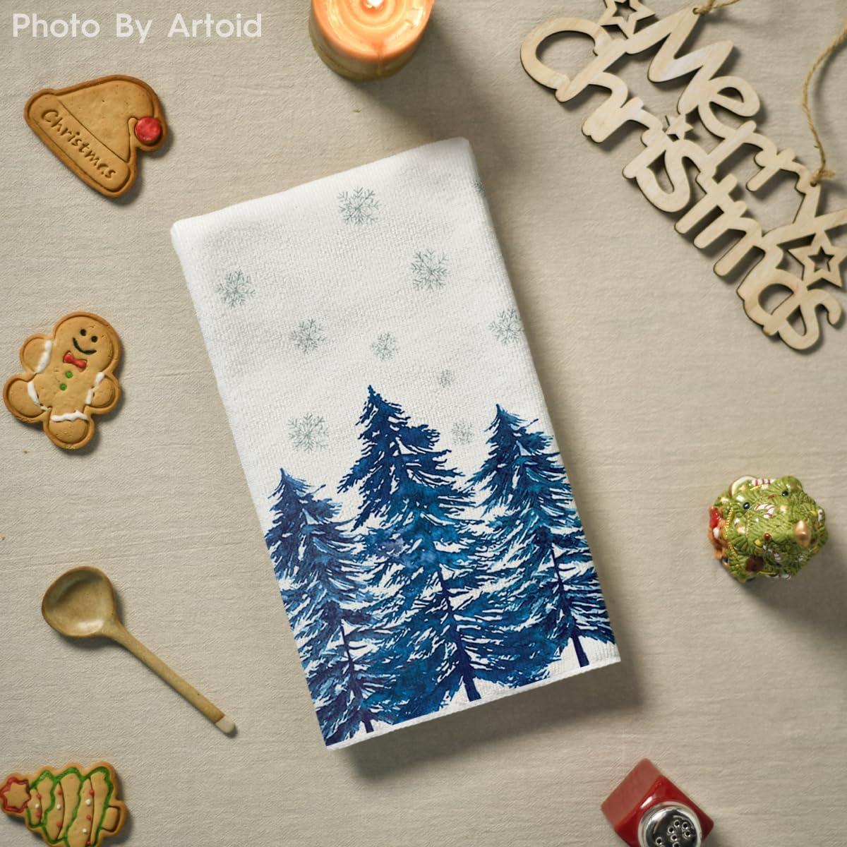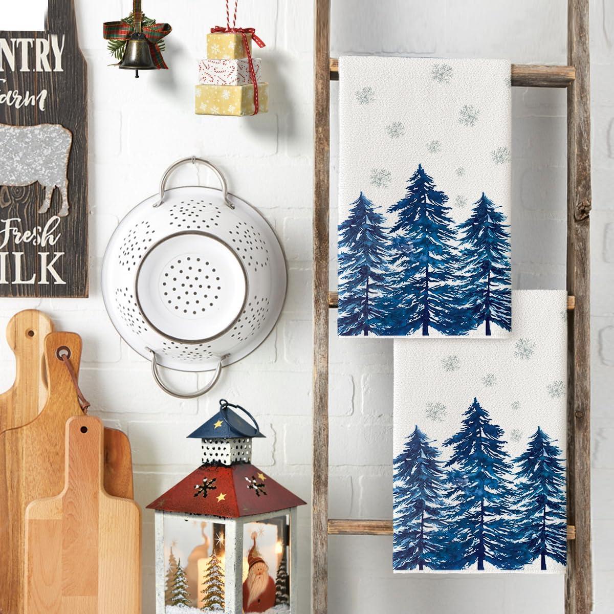 Artoid Mode Pink Xmas Tree Christmas Kitchen Towels Dish Towels, 18×26 Inch Farmhouse Snowflakes Winter Decoration Cleaning Set of 2(Blue)