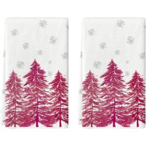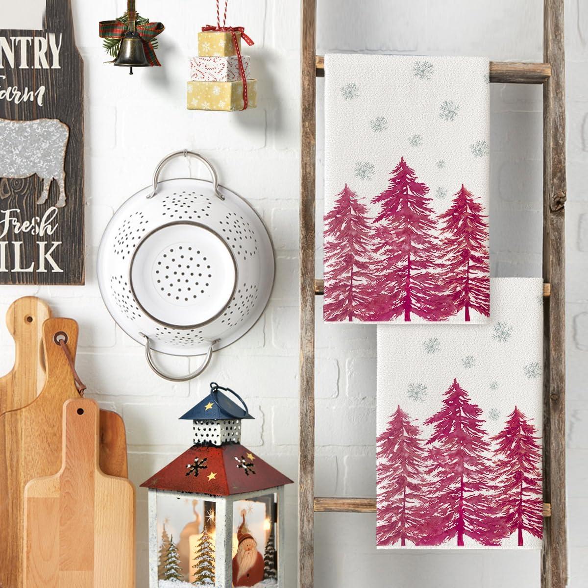 Artoid Mode Dark Green Xmas Trees Christmas Kitchen Towels Dish Towels, 18×26 Inch Holiday Farmhouse Winter Decoration Cleaning Set of 2(Red)