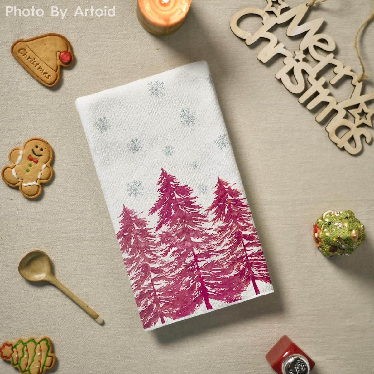 Artoid Mode Pink Xmas Tree Christmas Kitchen Towels Dish Towels, 18×26 Inch Farmhouse Snowflakes Winter Decoration Cleaning Set of 2(Green)