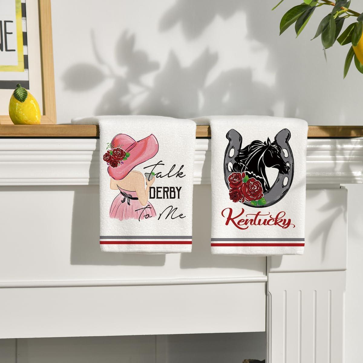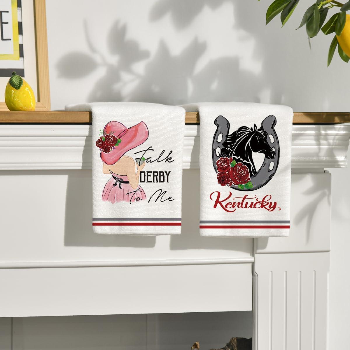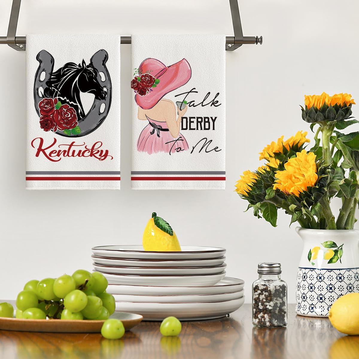 Artoid Mode Rose Lady Talk Derby to Me Kentucky Home Kitchen Dish Towels, 18 x 26 Inch Ultra Absorbent Coffee Tea Bar Hand Towels Bathroom Gift for Cooking Baking Set of 2