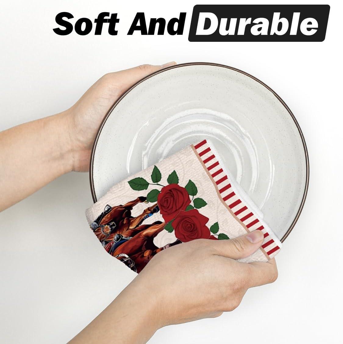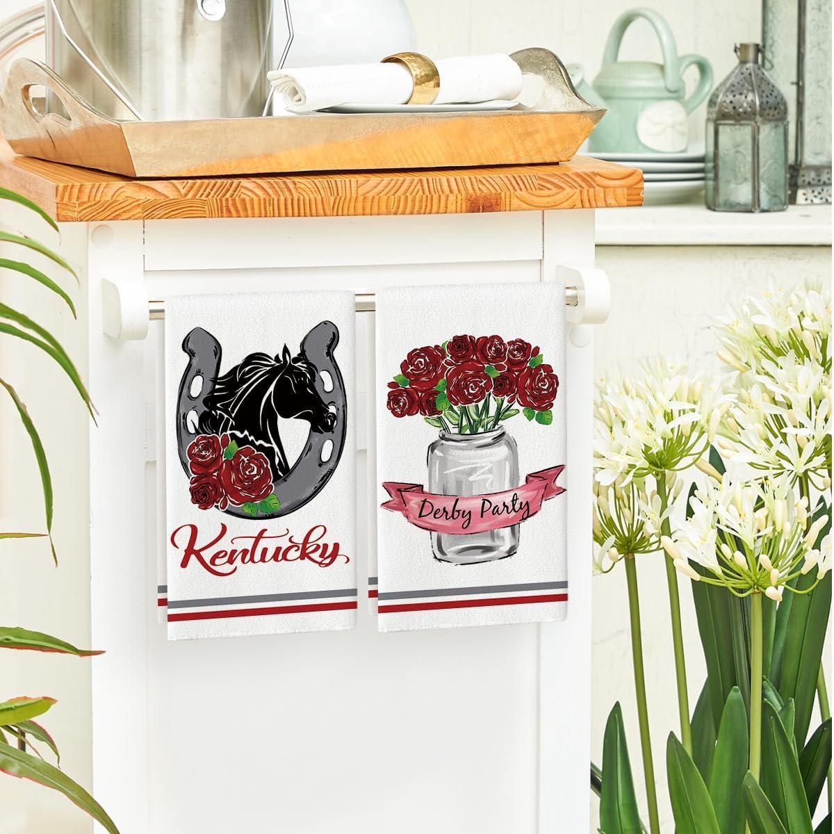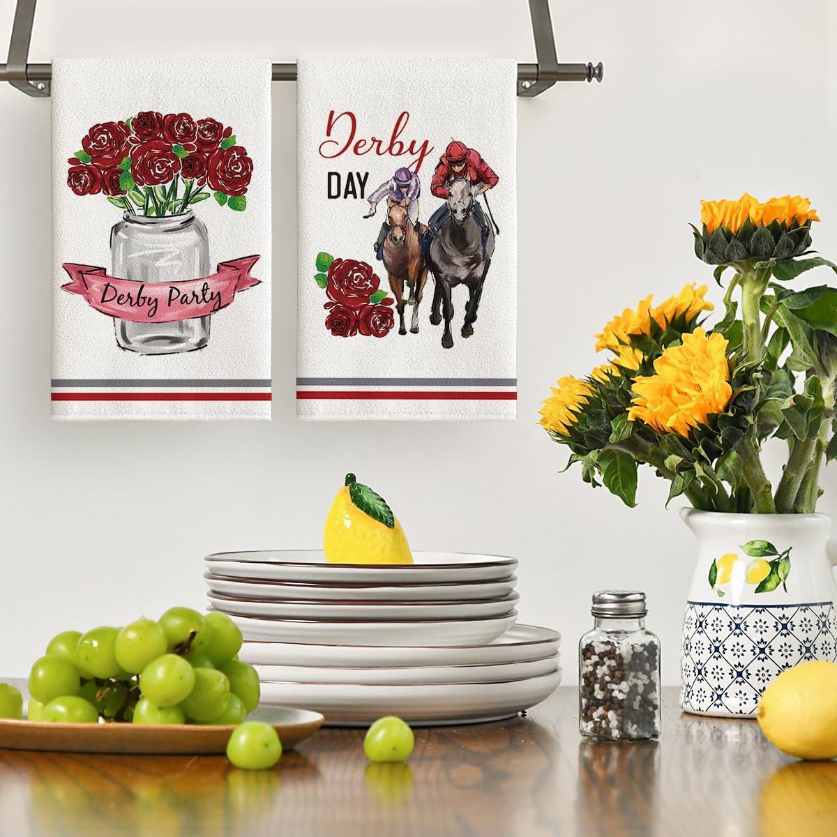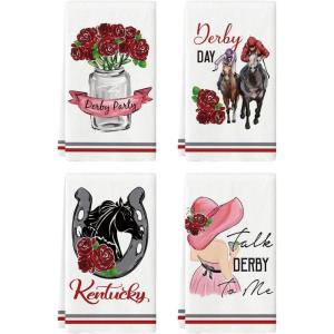 Artoid Mode Derby Day Roses Vase Kentucky Kitchen Towels Dish Towels, 18×26 Inch Seasonal Horse Racing Decoration Hand Towels Set of 4