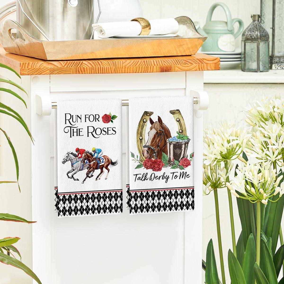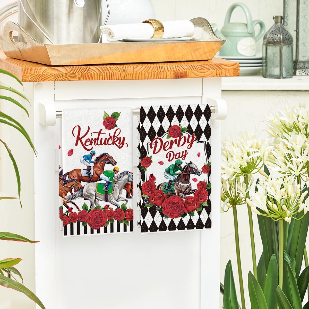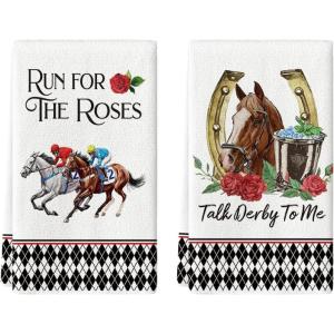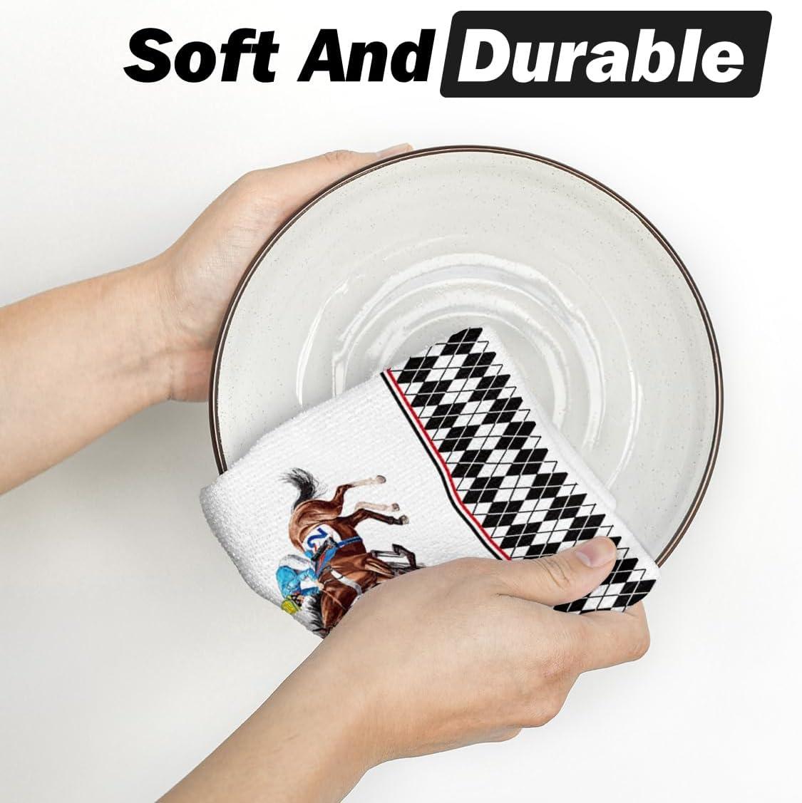 Artoid Mode Diamond Plaid Jockey Horse Racing Rose Kentucky Kitchen Towels Dish Towels, 18×26 Inch Farmhouse Decoration Hand Towels Set of 2