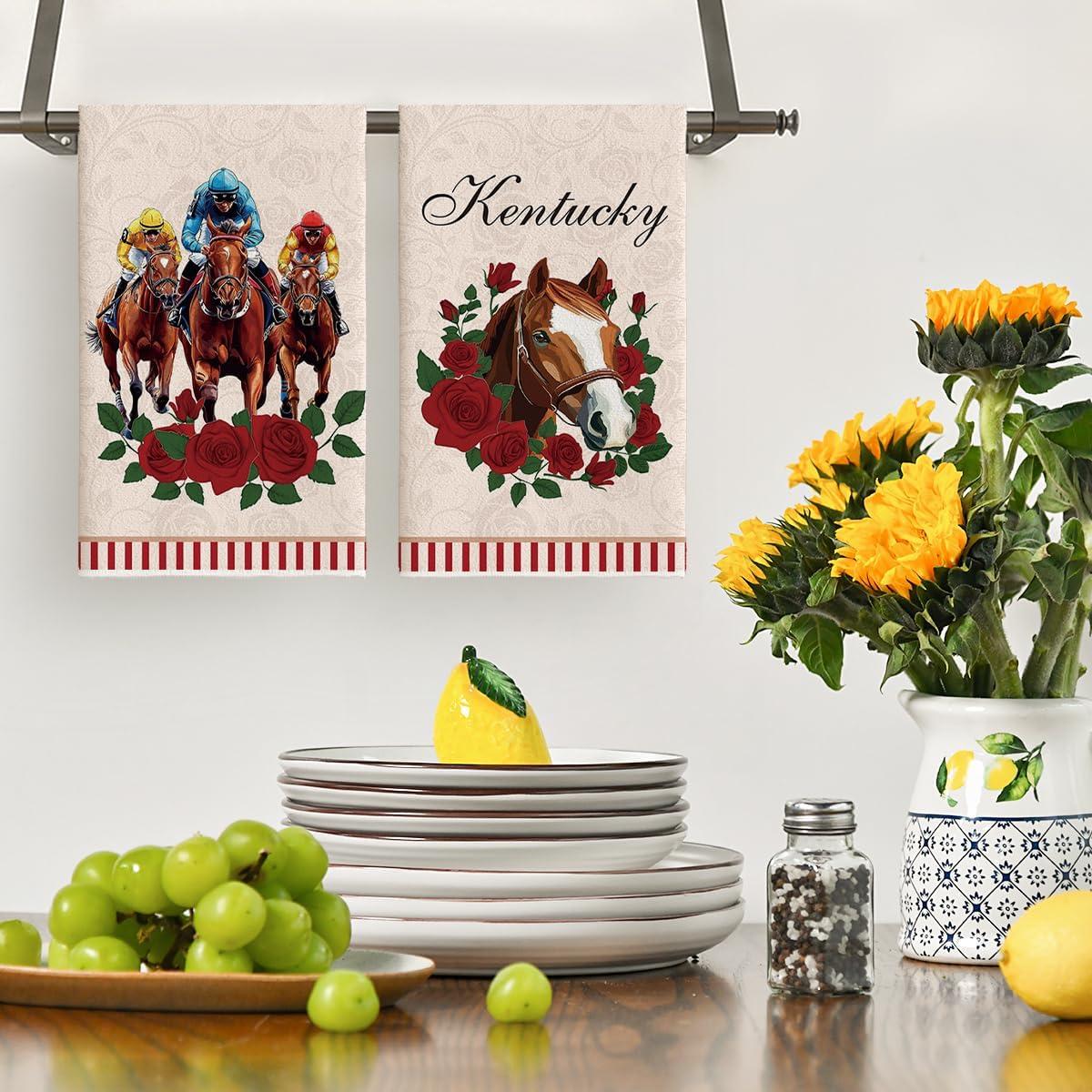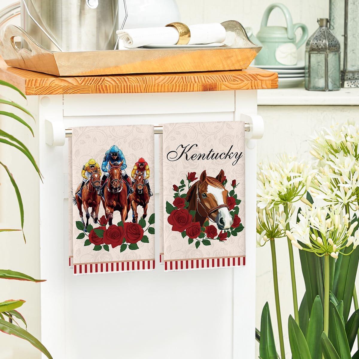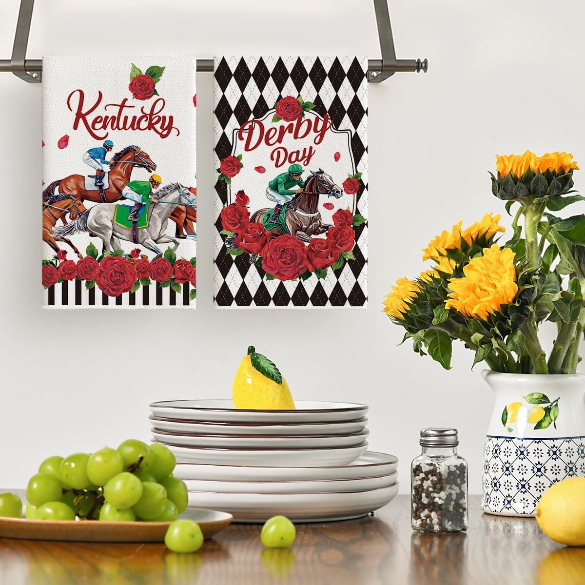 Artoid Mode Diamond Plaid Jockey Horse Racing Rose Kentucky Kitchen Towels Dish Towels, 18×26 Inch Farmhouse Decoration Hand Towels Set of 2