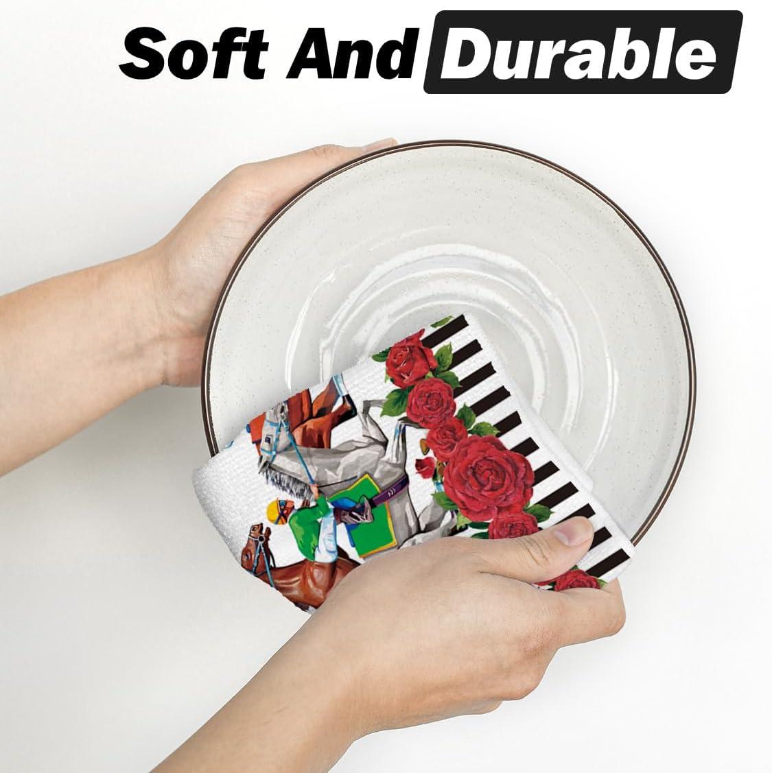 Artoid Mode Jockey Racehorse Kentucky Kitchen Towels Dish Towels, 18×26 Inch Rose Farmhouse Decoration Hand Towels Set of 2