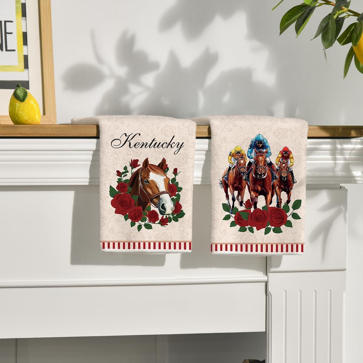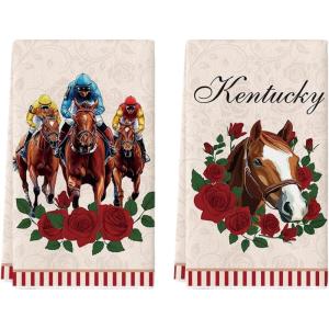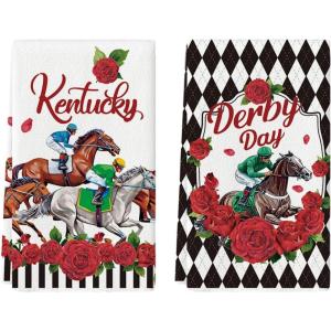 Artoid Mode Diamond Plaid Jockey Horse Racing Rose Kentucky Kitchen Towels Dish Towels, 18×26 Inch Seasonal Decoration Hand Towels Set of 2