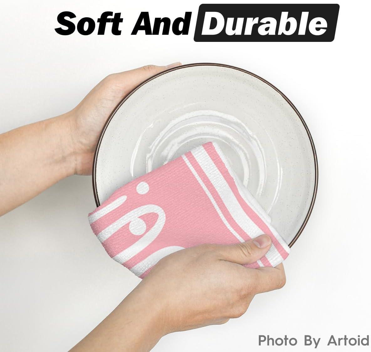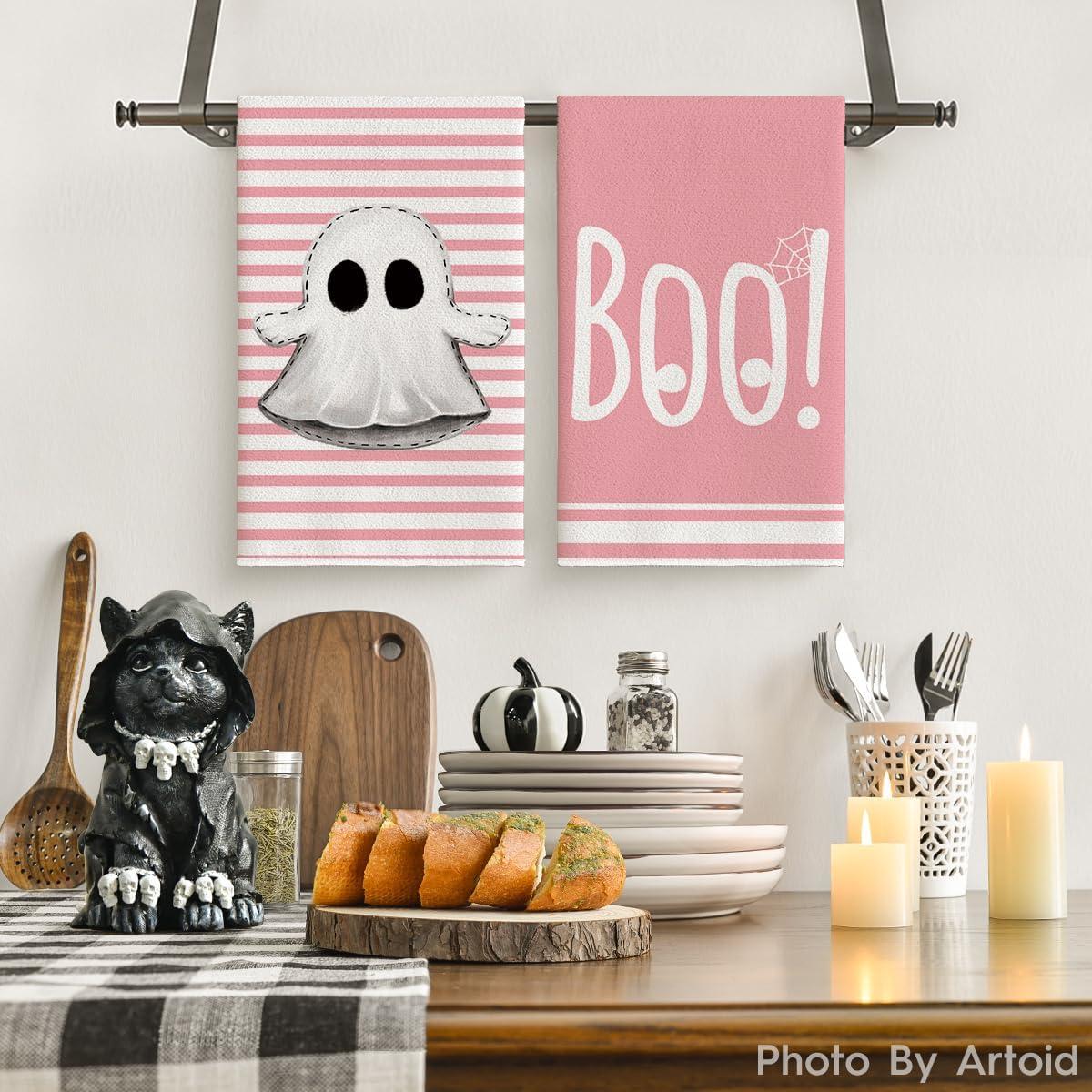 Artoid Mode Stripes Ghost Boo Halloween Kitchen Towels Dish Towels, 18×26 Inch Spider Web Decoration Hand Towels Set of 2(Pink)