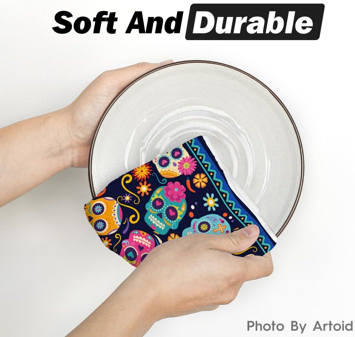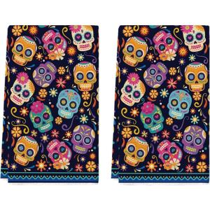 Artoid Mode Sugar Skull Day of The Dead Kitchen Towels Dish Towels, 18×26 Inch Daisy Flower Mexican Decor Hand Towels Set of 2
