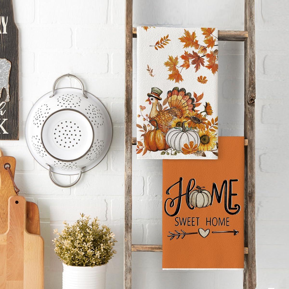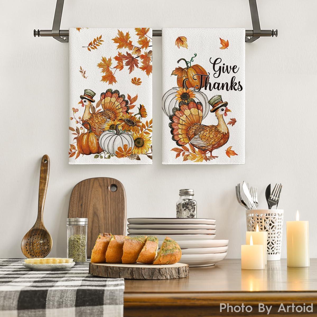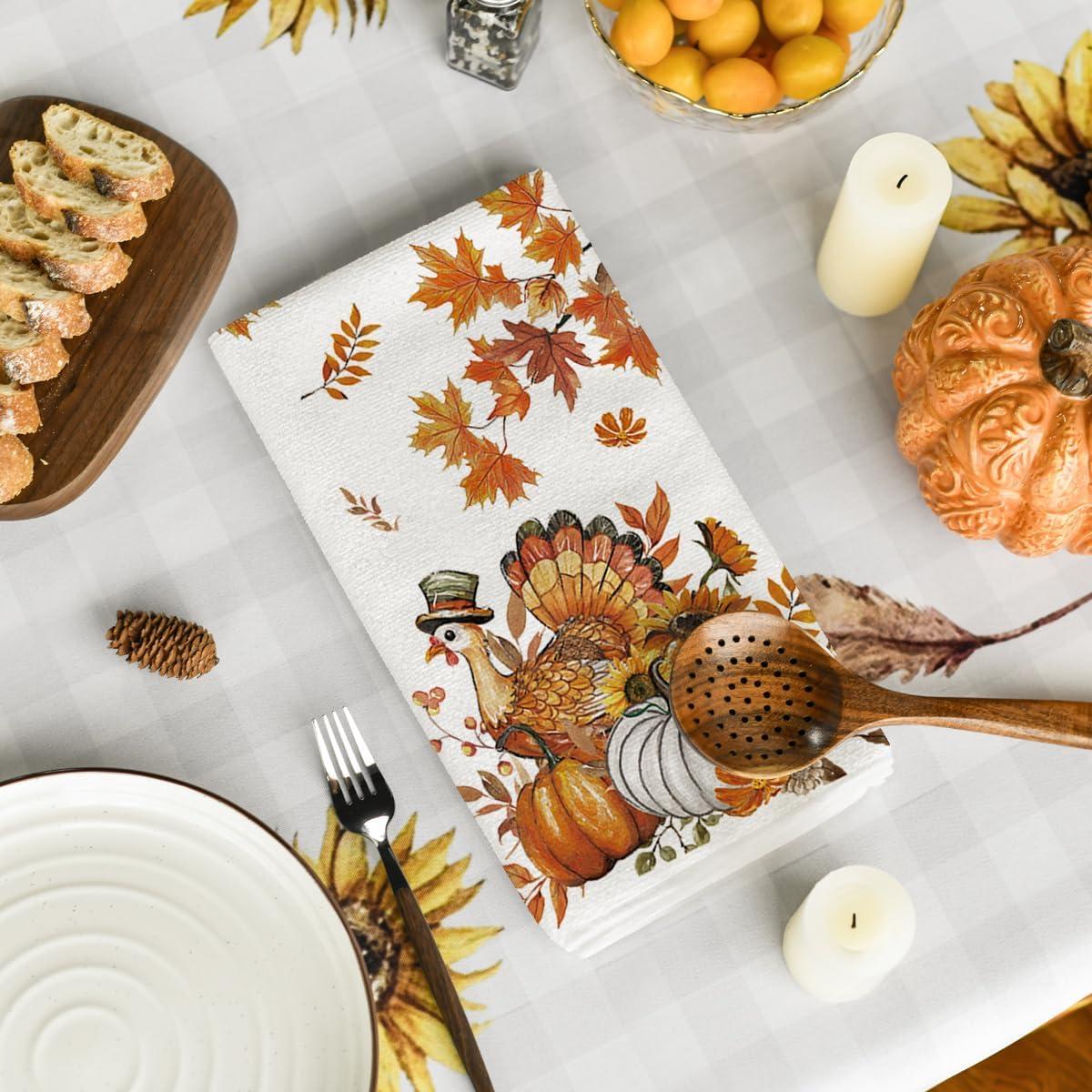 Artoid Mode Sunflower Pumpkin Turkey Thanksgiving Kitchen Towels Dish Towels, 18×26 Inch Farmhouse Holiday Decoration Cleaning Set of 2