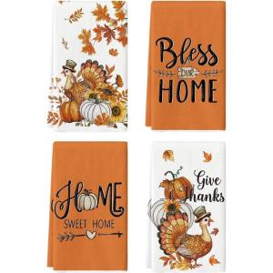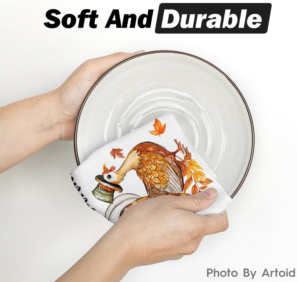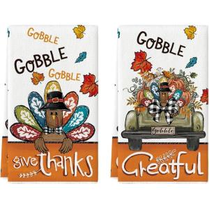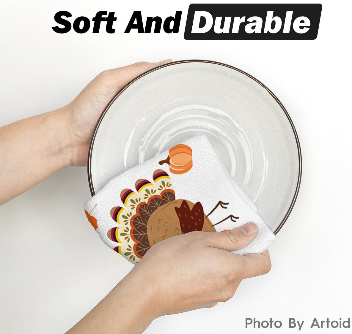 Artoid Mode Turkey Thanksgiving Kitchen Towels Dish Towels, 18×26 Inch Gobble Harvest Pumpkin Decoration Hand Towels Set of 4