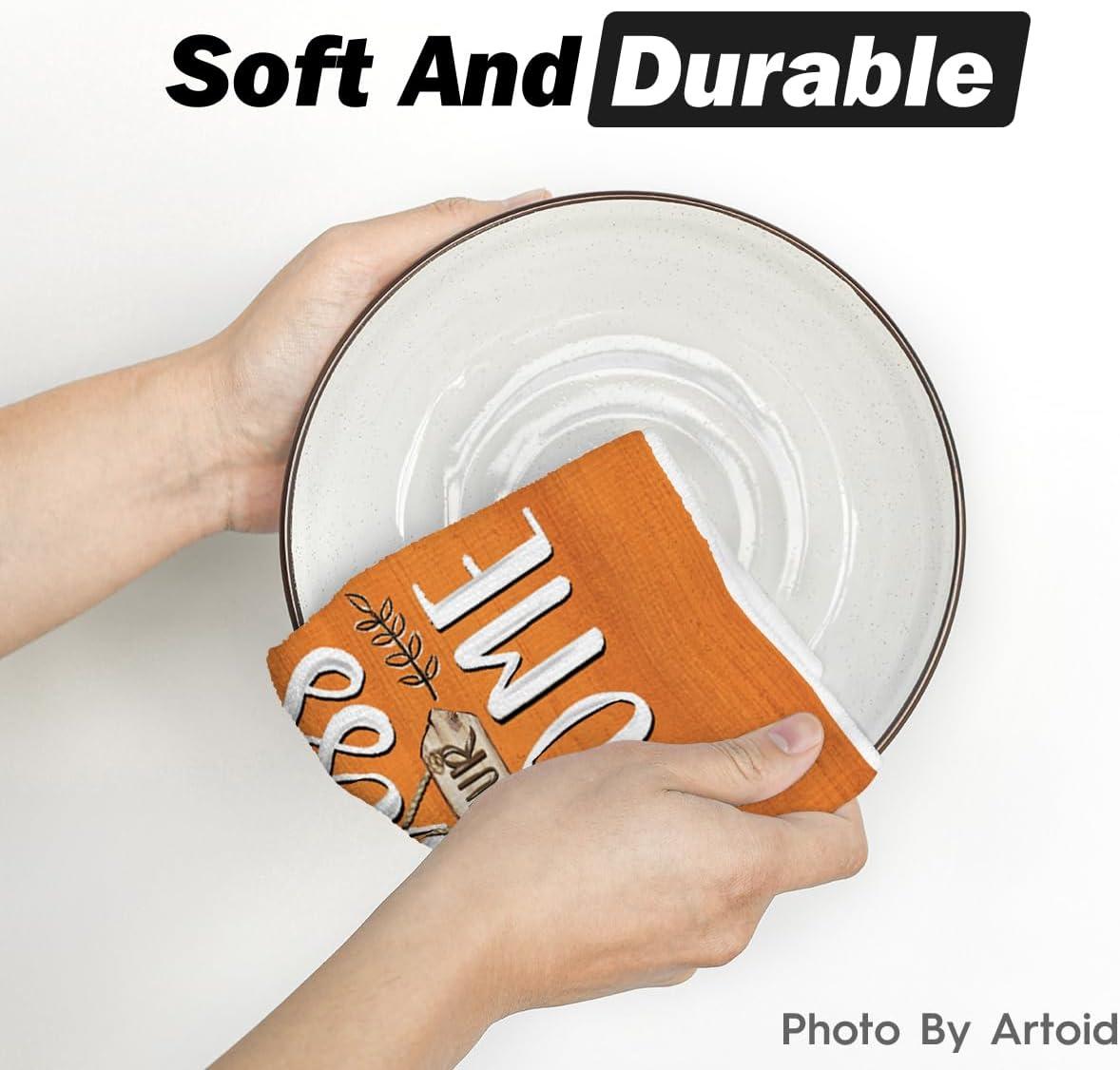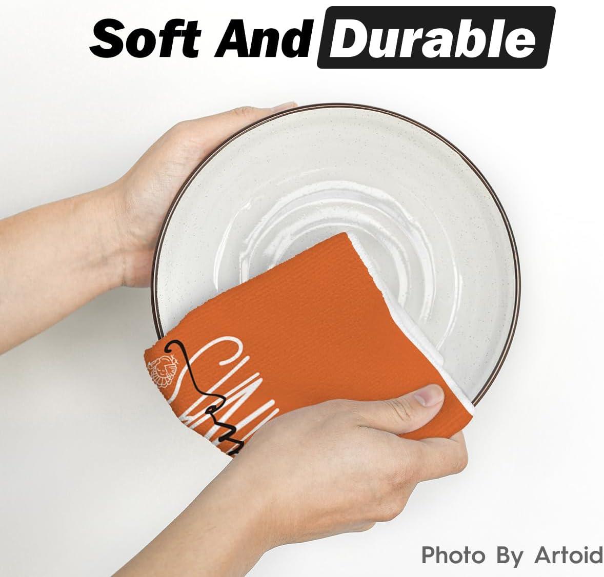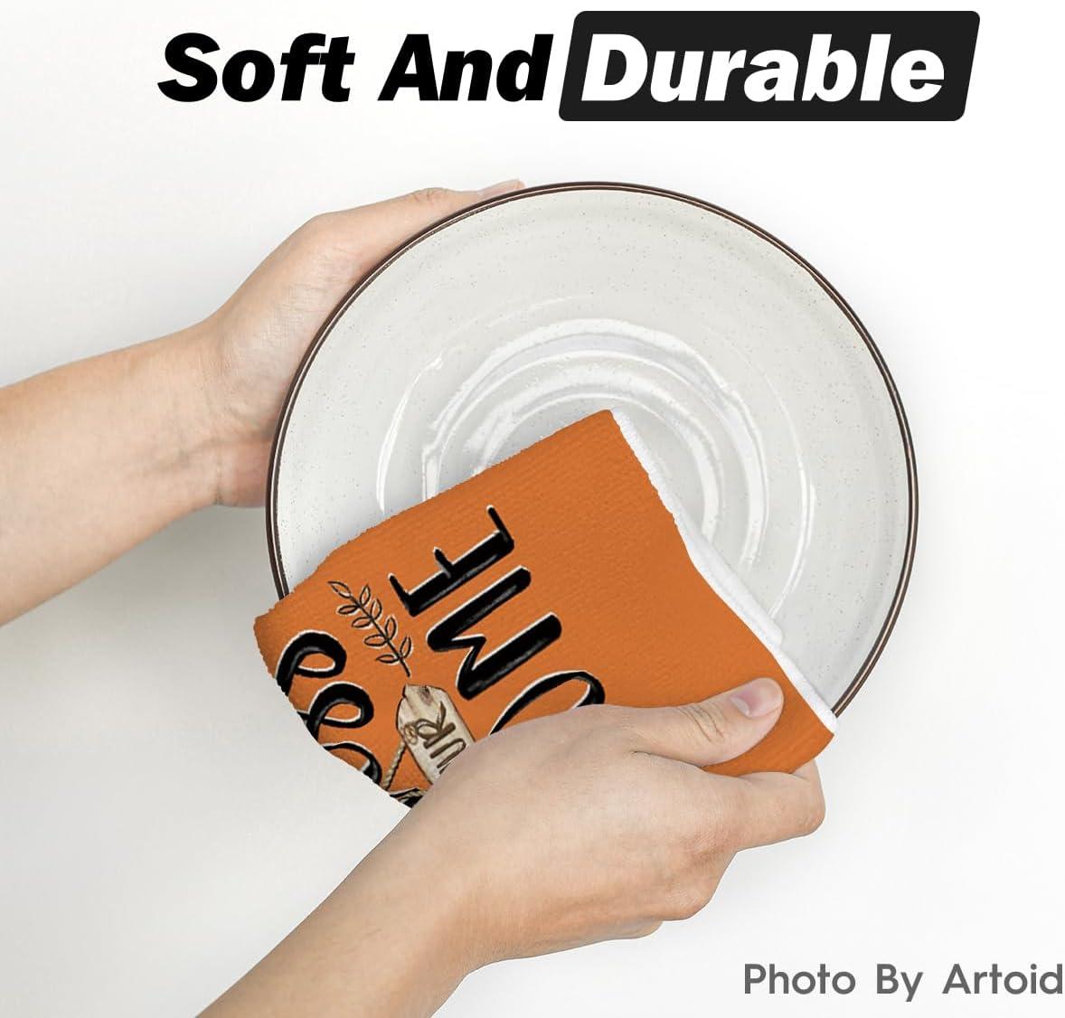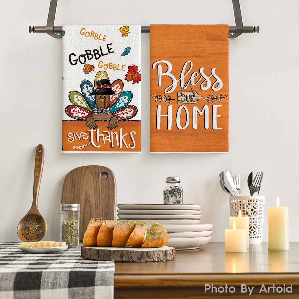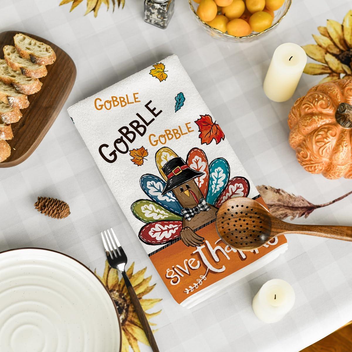 Artoid Mode Turkey Gobble Thanksgiving Kitchen Towels Dish Towels, 18×26 Inch Fall Pumpkin Decoration Hand Towels Set of 2