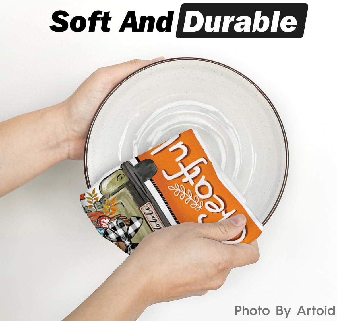 Artoid Mode Turkey Gobble Thanksgiving Kitchen Towels Dish Towels, 18×26 Inch Fall Greatful Truck Pumpkin Decoration Hand Towels Set of 4