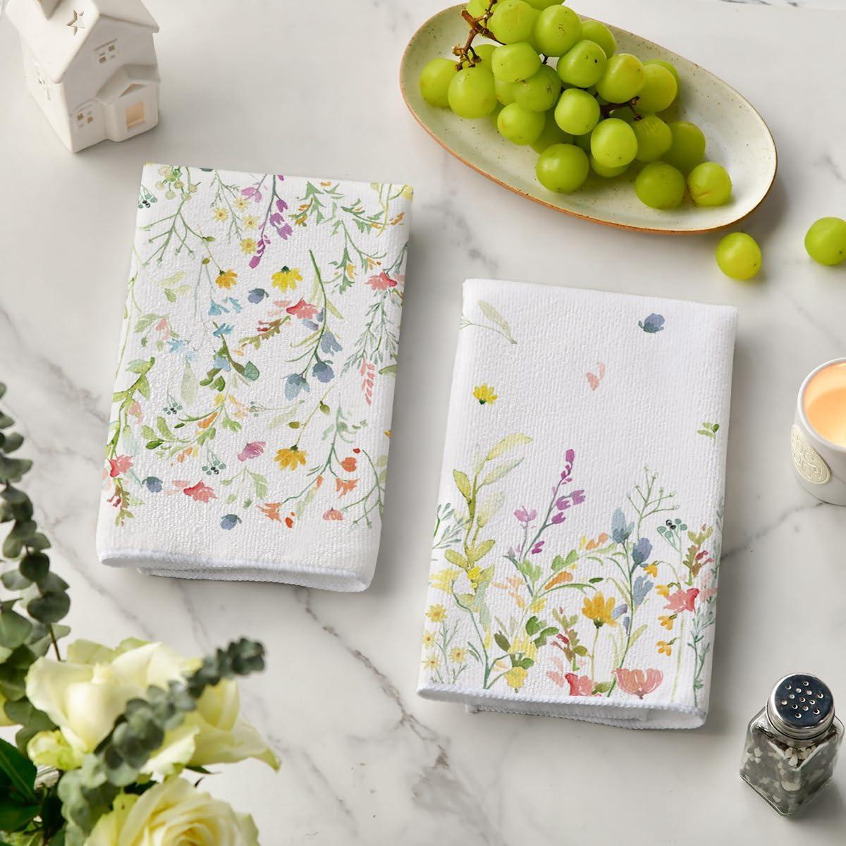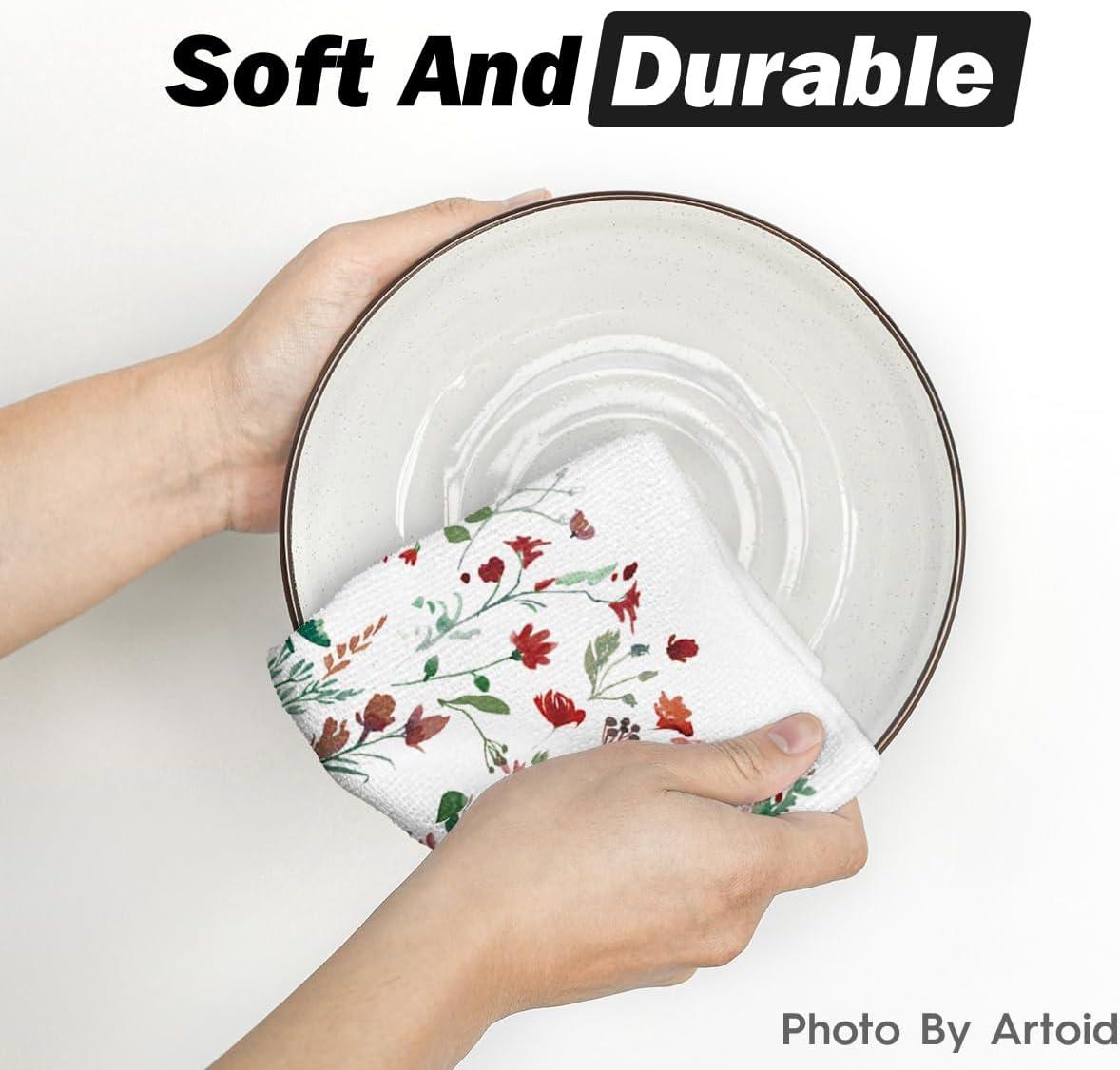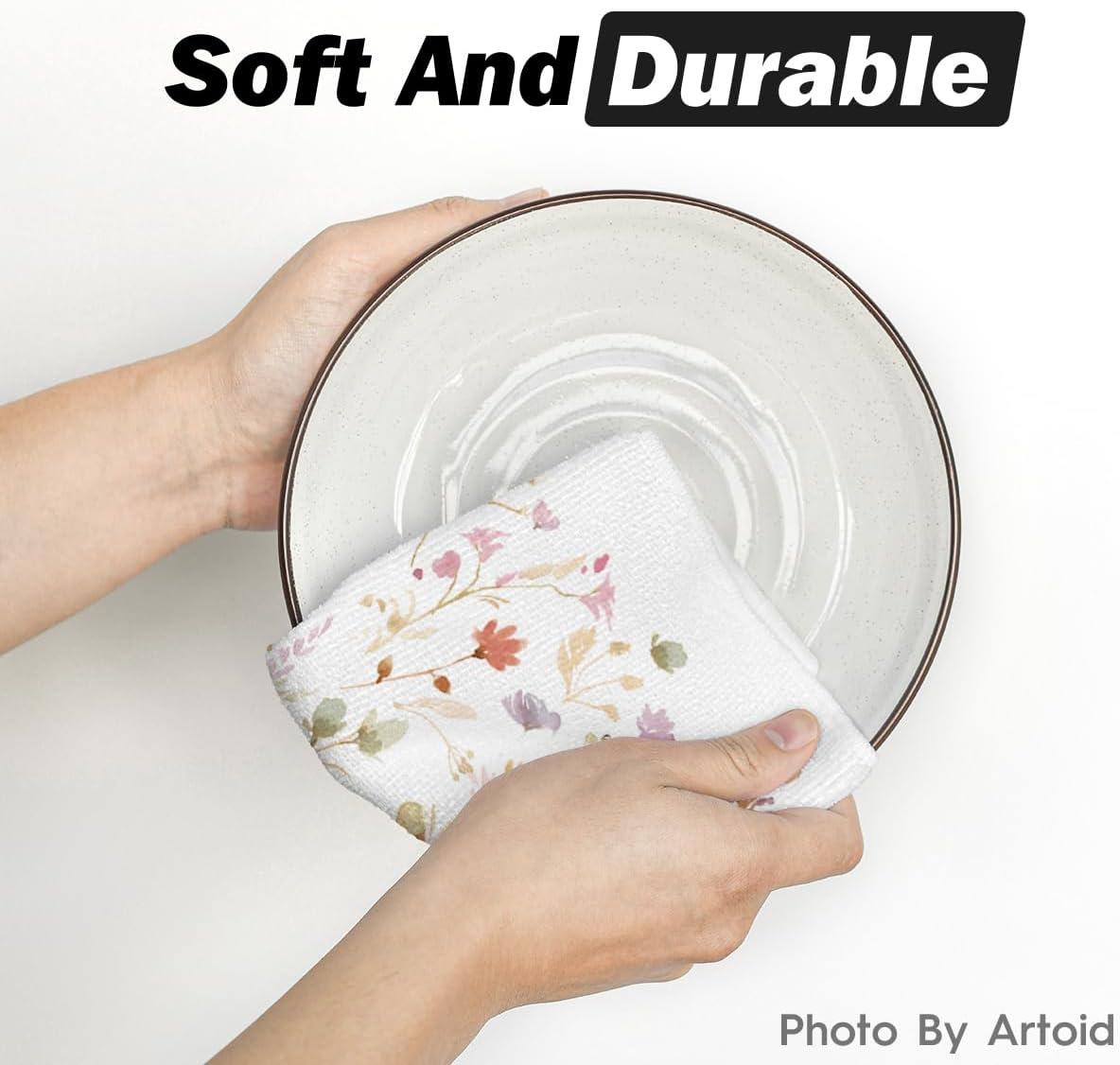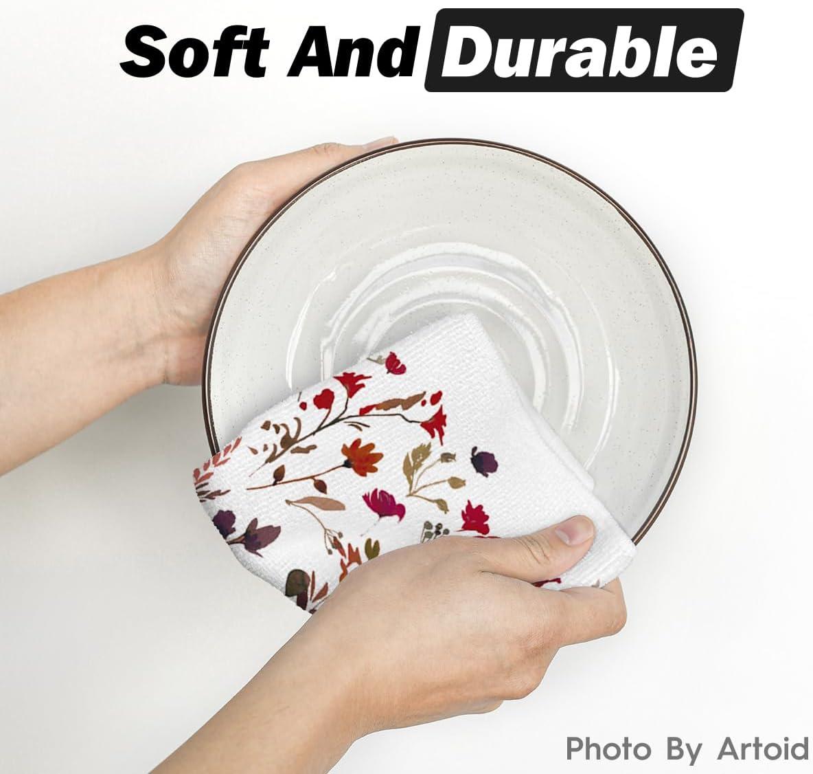 Artoid Mode Wildflower Floral Kitchen Towels Dish Towels, 18×26 Inch Leaves Holiday Decoration Hand Towels Set of 2(Beige)